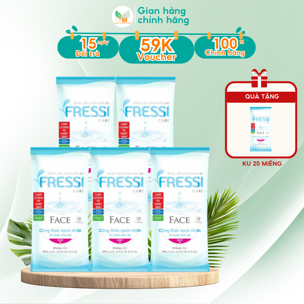 [MUA 10 TẶNG 3] Khăn ướt FRESSI FACE 20 miếng/ gói dùng cho da mặt lành tính dịu nhẹ