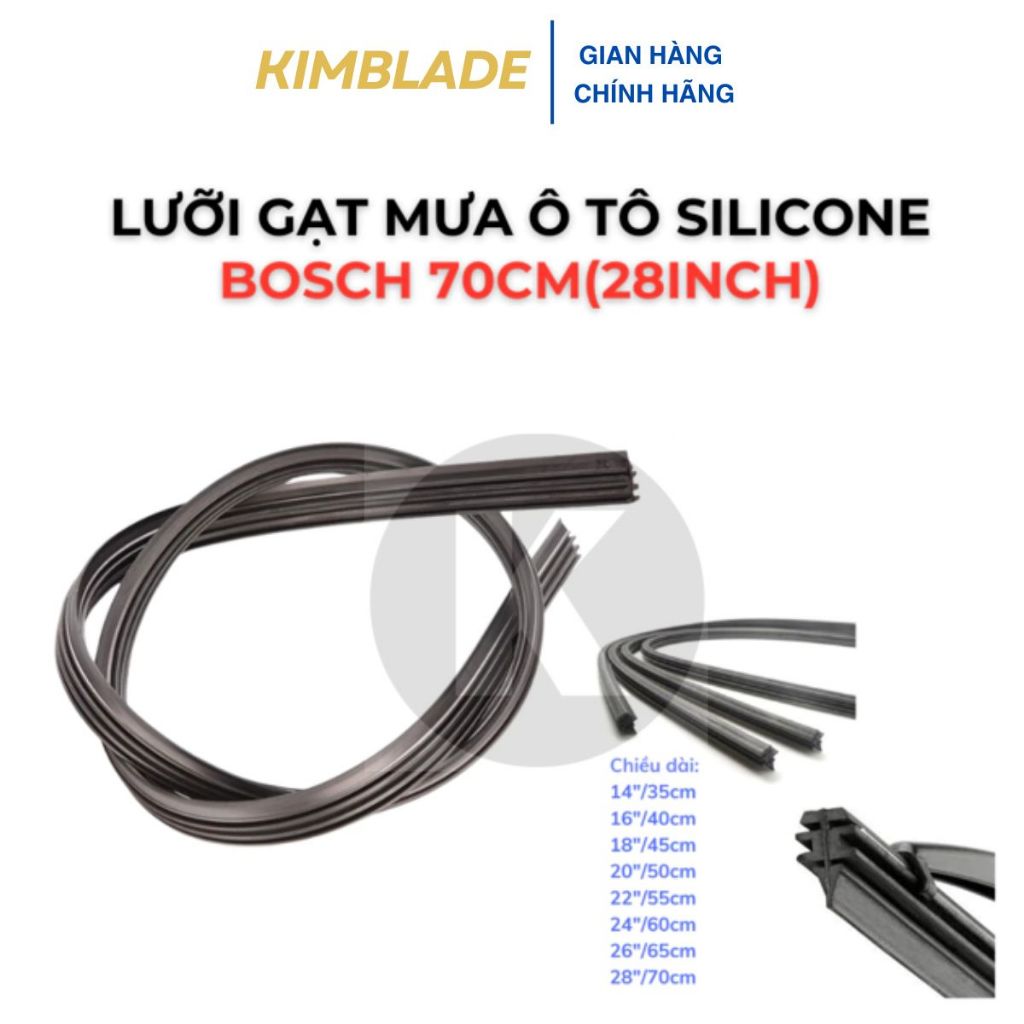 Lưỡi Gạt Mưa Ô tô Silicone BOSCH 6mm 70cm(28inch) chỉ lắp theo Gạt Xương Mềm, Lá lúa gạt kính ô tô, Êm Sạch Bền KIMBLAD