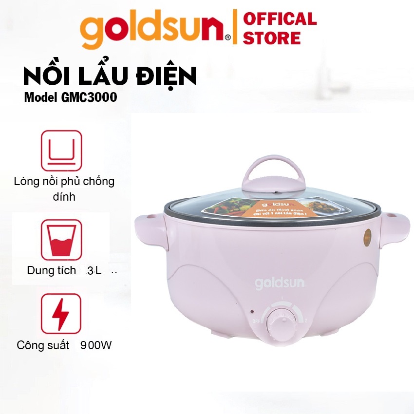 Nồi Lảu Điện Đa Năng Goldsun Lòng Nồi 3L Phủ Chống Dính Công Suất 900W - GMC3000