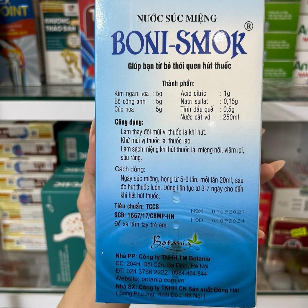 Nước súc miệng - Boni Smok - chai 250ml- làm thay đổi vị khi h u t T h uO c- cai t h u ooc