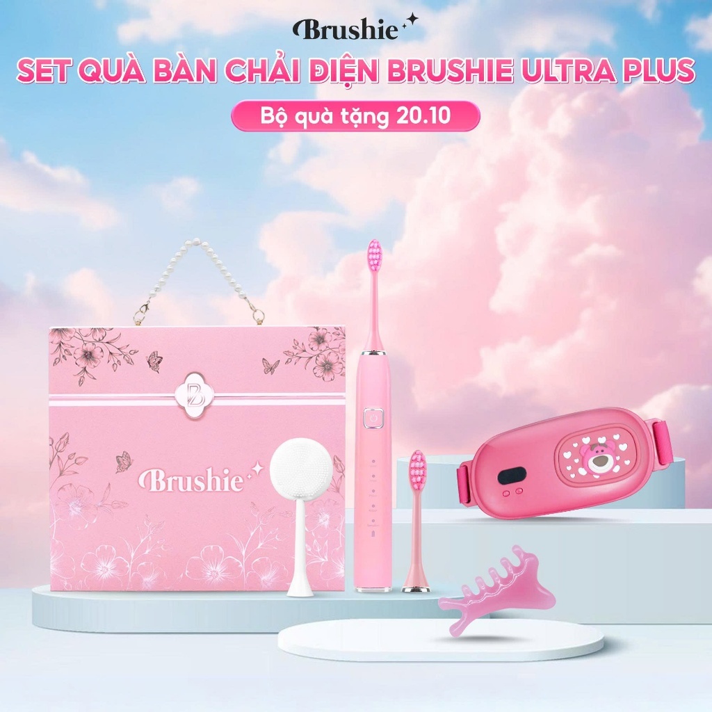 [GIÁ 577K LIVE LUCIE] Bàn chải điện Brushie Ultra tích hợp máy rửa mặt, set quà tặng cho nữ, quà sinh nhật KOL