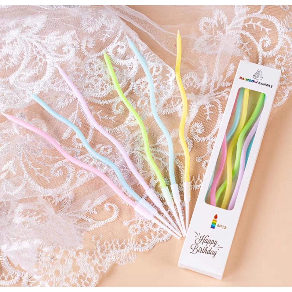 đồ trang trí bánh [FREESHIP❤️] vỉ 6 nến xoắn dài cao cấp, nến sóng dài sinh nhật