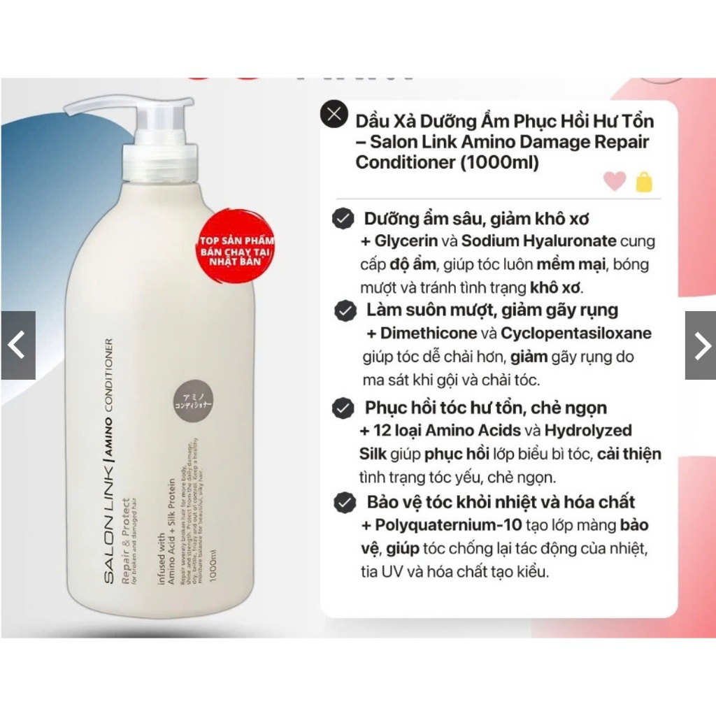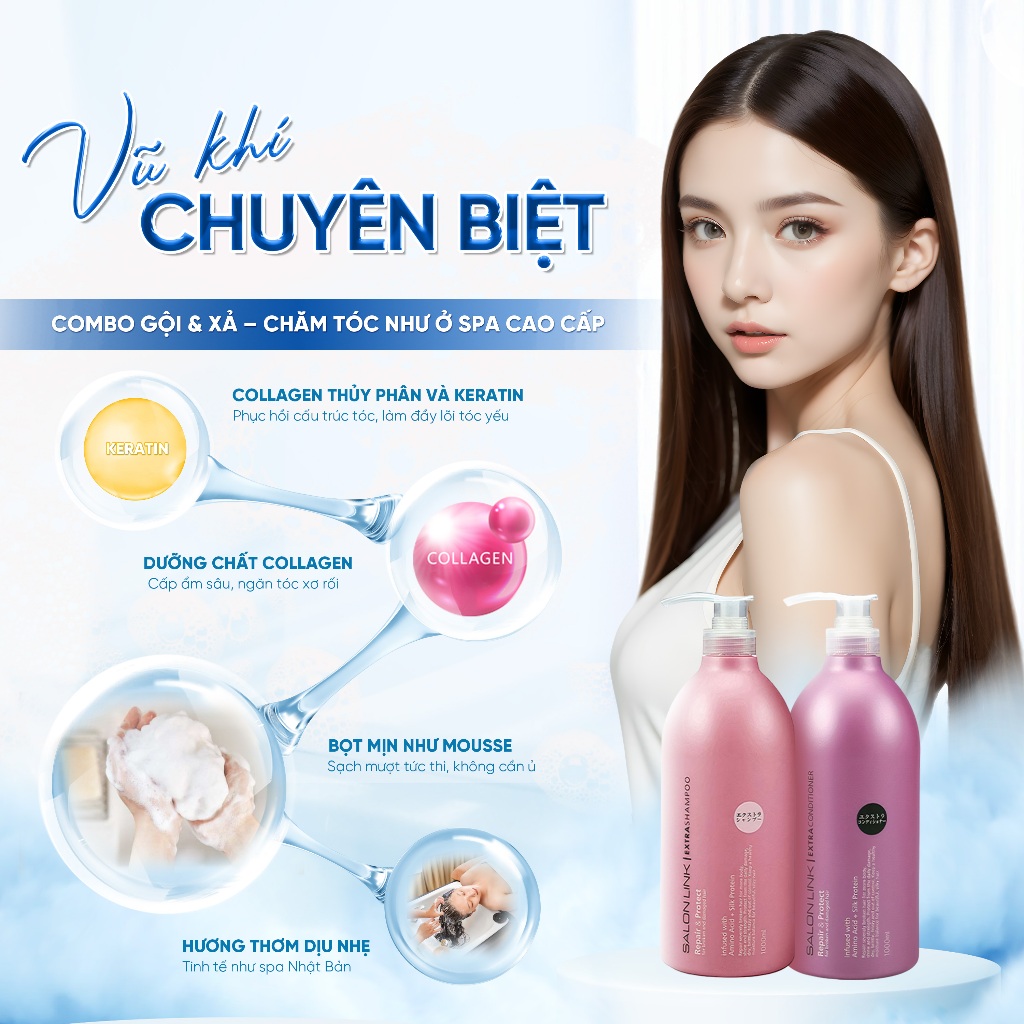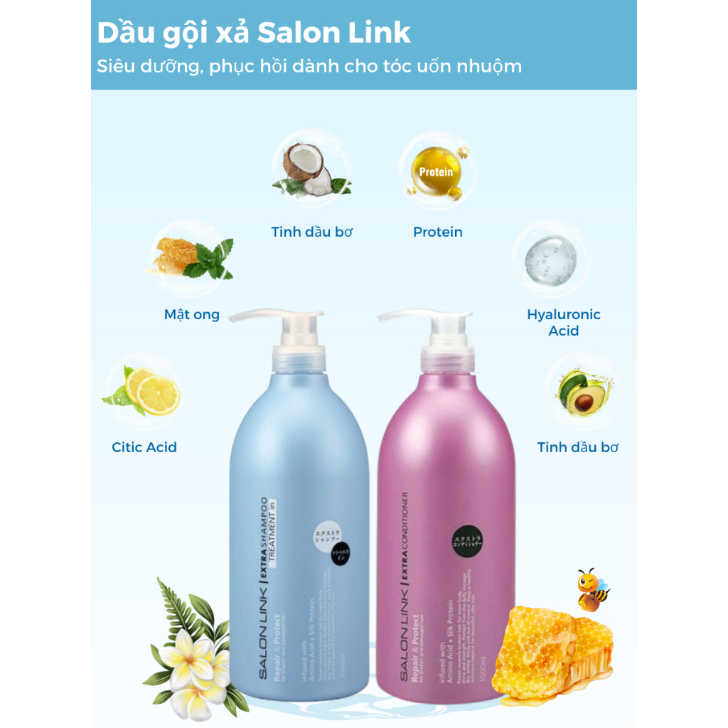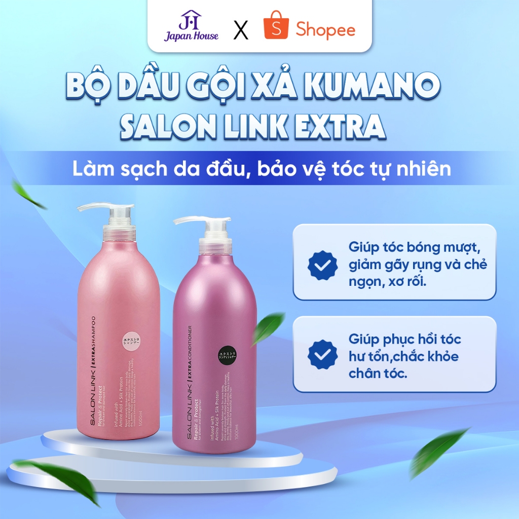 Bộ dầu gội xả Kumano Salon Link Extra 1000ml Nhật Bản cung cấp dưỡng chất giúp tóc mềm mượt