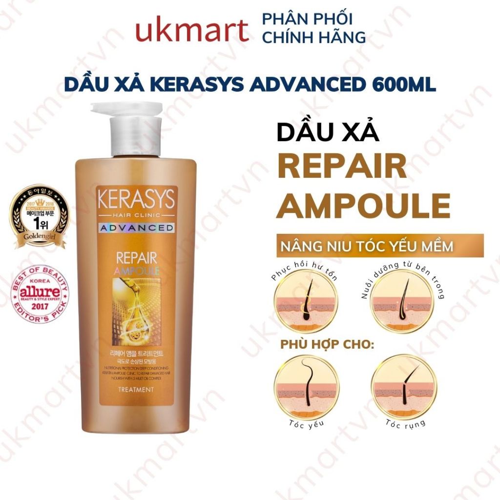 Bộ Dầu Gội Và Dầu Xả Kerasys Advanced Chăm Sóc Tóc Chắc Khỏe, Cải Thiện Tóc, Elastine Amino Protein