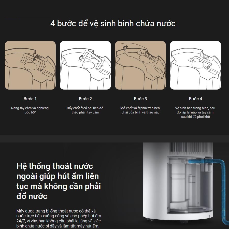Máy hút ẩm thông minh Xiaomi Smart Dehumidifier 22L / 13L Hàng Chính Hãng- Độ ồn thấp - Khóa trẻ em