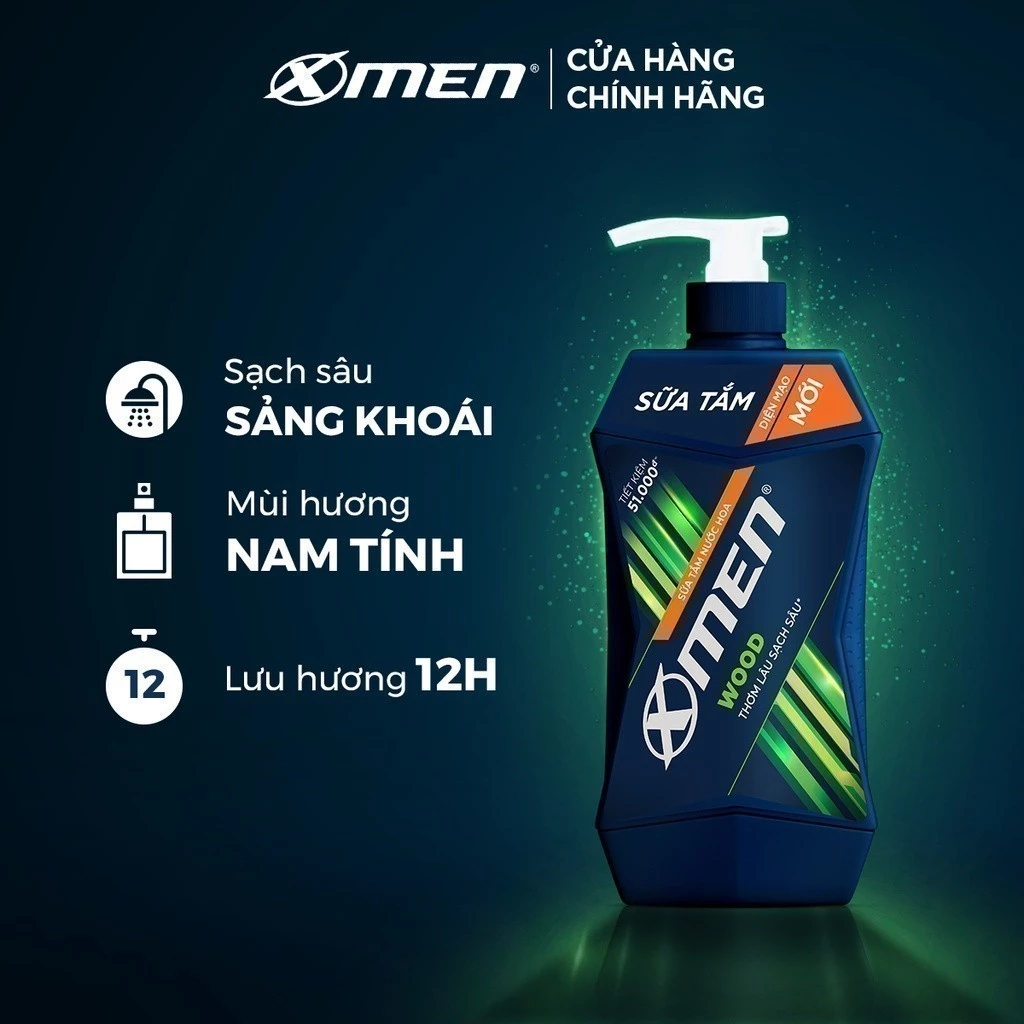 Dầu gội, Sữa tắm, 2in1 nước hoa Xmen, 2x sạch sâu và lưu hương 12h 633g, 650g