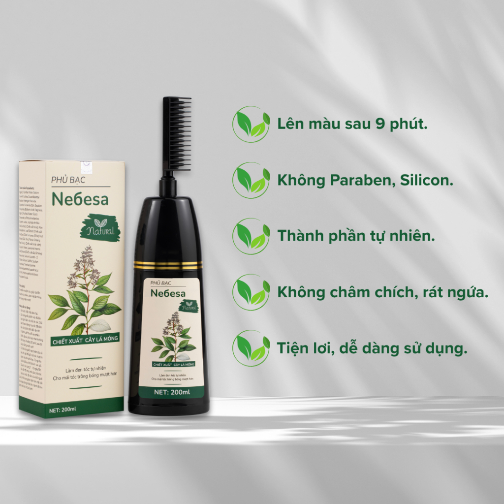 Dầu Gội Phủ Bạc Thảo Dược Nebesa Nhuộm Đen 9 Phút, Dầu Gội Làm Đen Chống Rụng, Đổi Màu Tóc Tự Nhiên
