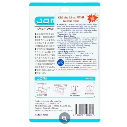 Chỉ nha khoa Jomi Dental Floss loại trừ các mảng bám, thức ăn dư thừa trong kẽ răng (50m)