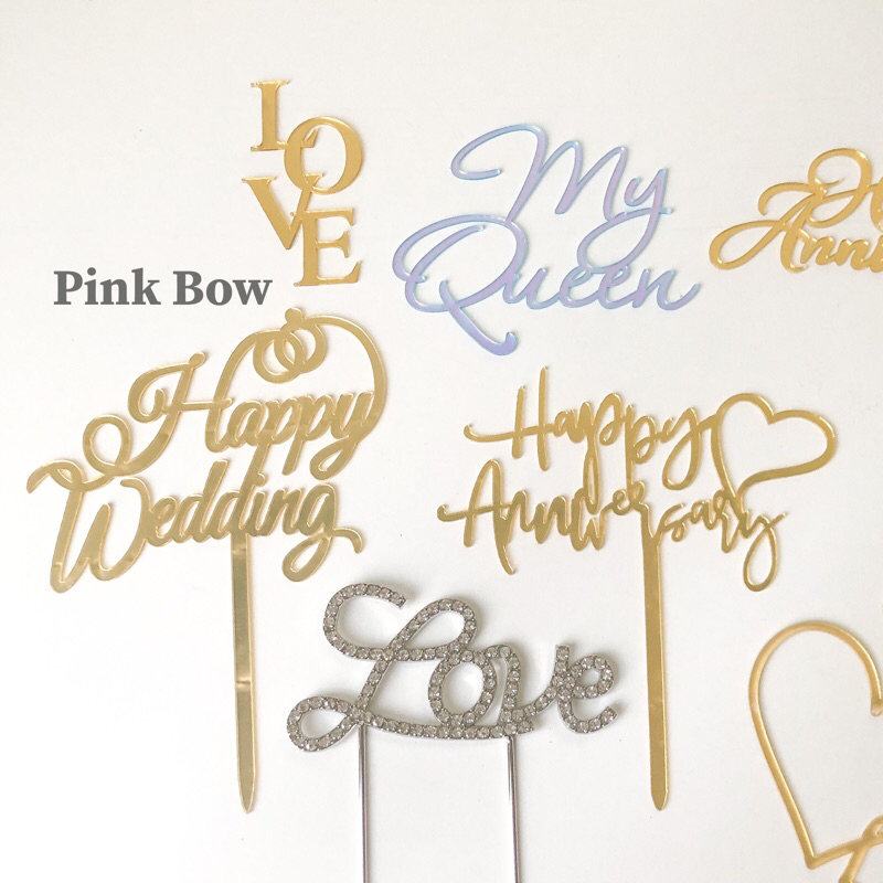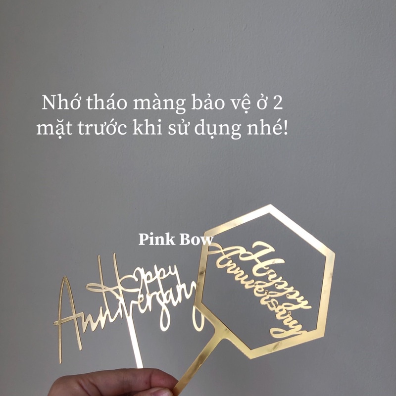 Topper/ Phụ kiện trang trí mica chữ Happy Anniversary/hpan/love/Kỷ niệm ngày cưới/Hôn nhân/Tình yêu cặp đôi đủ màu sắc
