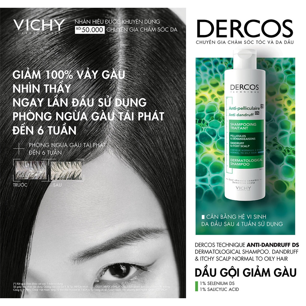 Dầu Gội Vichy Giảm Gàu Cho Da Đầu Dầu Dercos Shampoo Dandruff & Itchy Scalp 200ml
