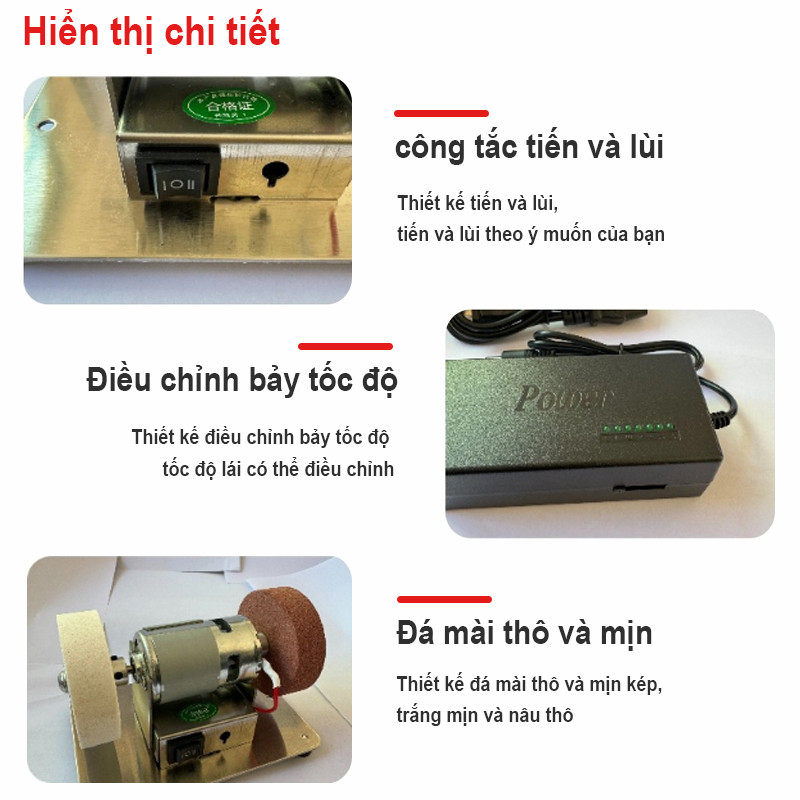 Máy Mài 2 đá Mini động Cơ 775——Máy Mài Dao Kéo đa Năng để Bàn,điều Chỉnh 7 Tốc độ, Dùng điện 220V, Mài Sắc đánh Bóng