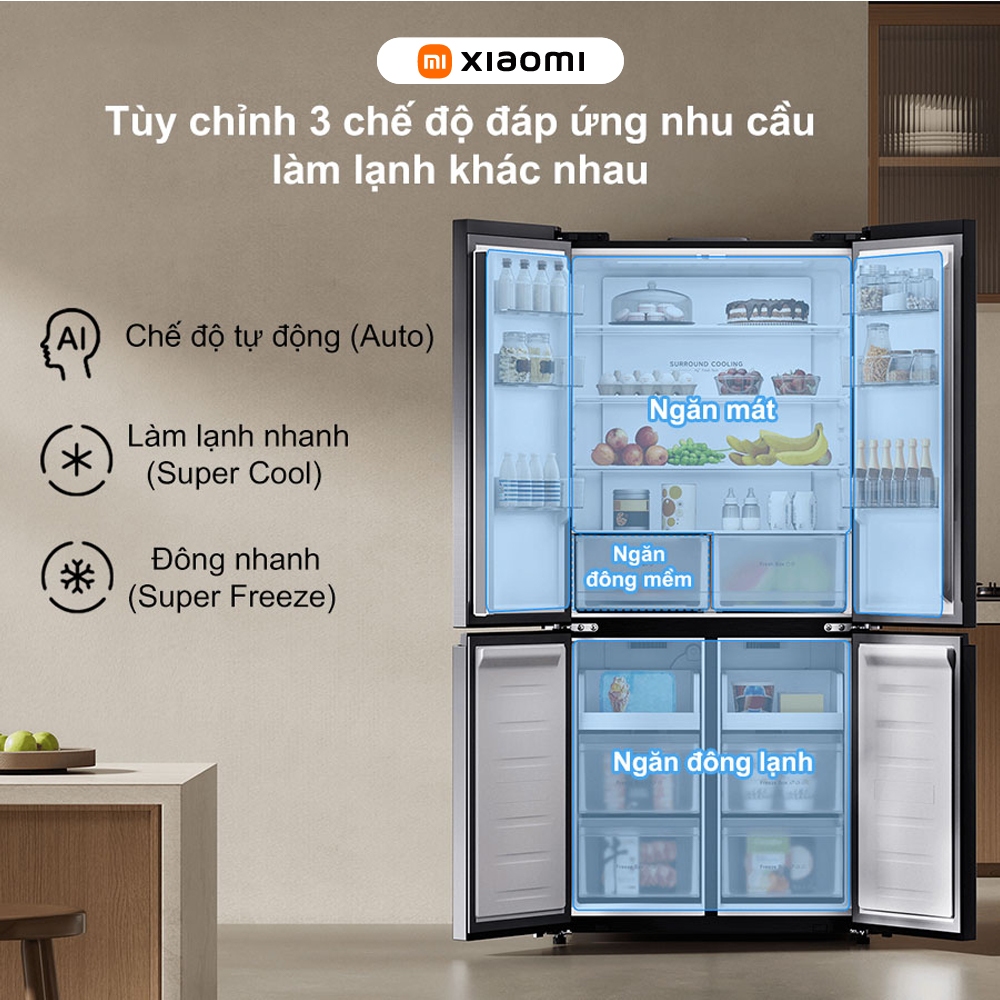 Tủ lạnh Xiaomi Mijia Cross Door 510L Inverter MRC51HMPAVN - Ngăn đông mềm iFresh- Ag+ Fresh - 3 chế độ làm lạnh