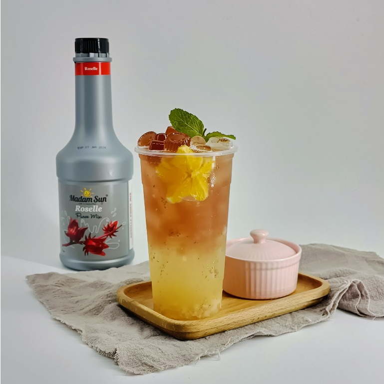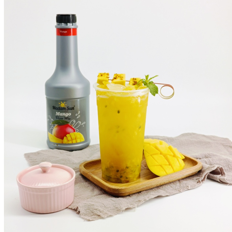 Mứt trái cây pha chế Malaysia MadamSun có miếng trái cây thật chai 1 Lít