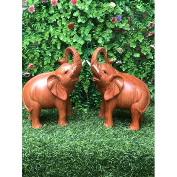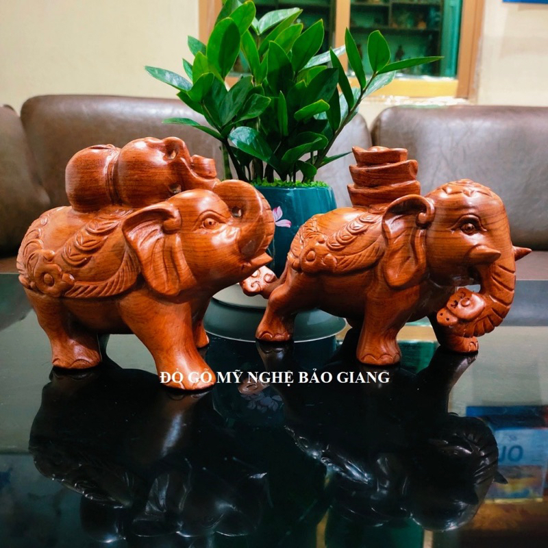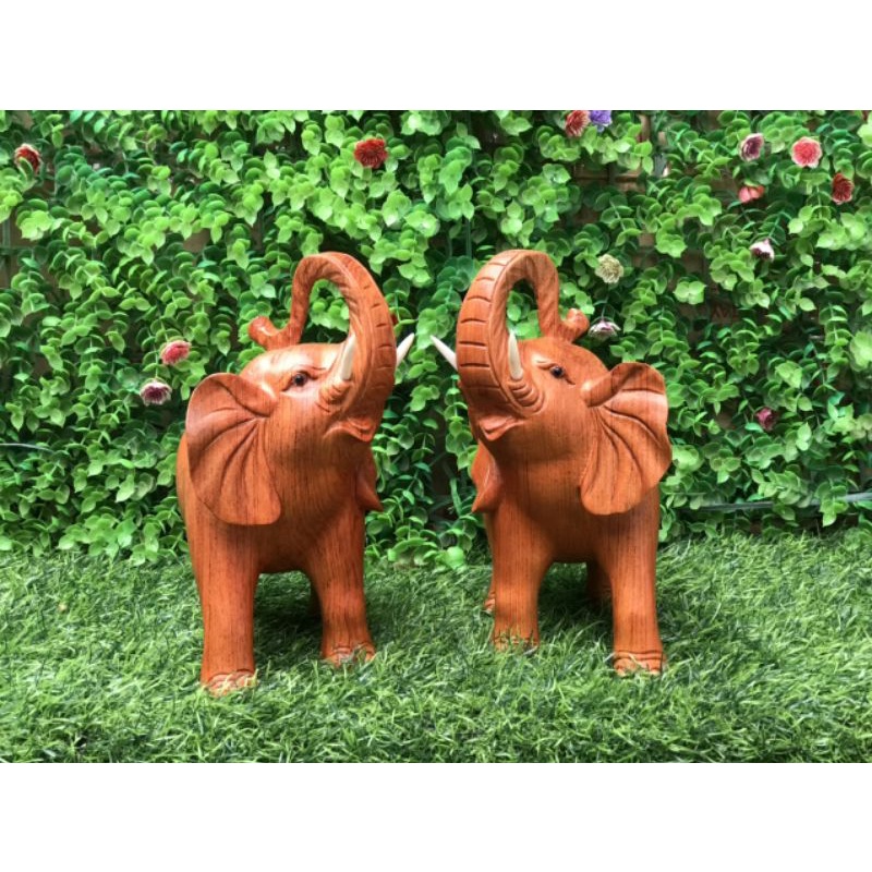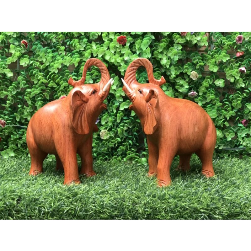 Cặp tượng con voi bằng gỗ hương ngang 20cm