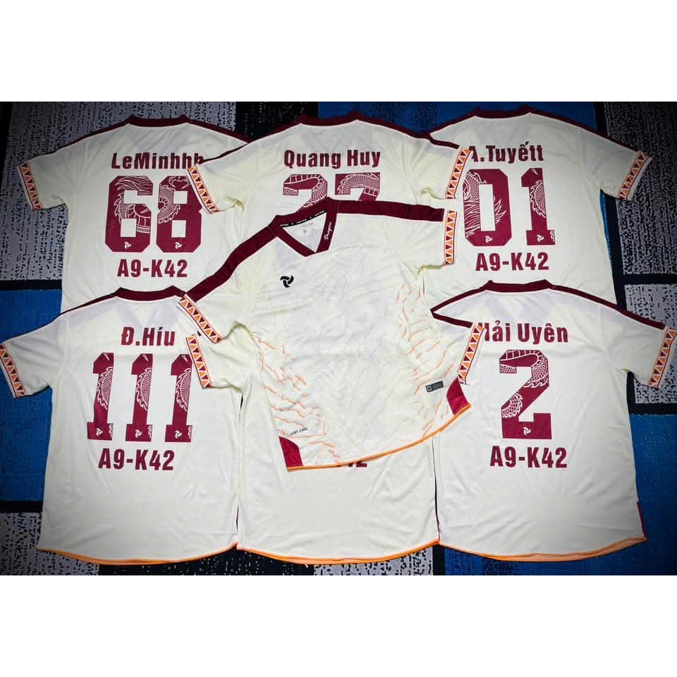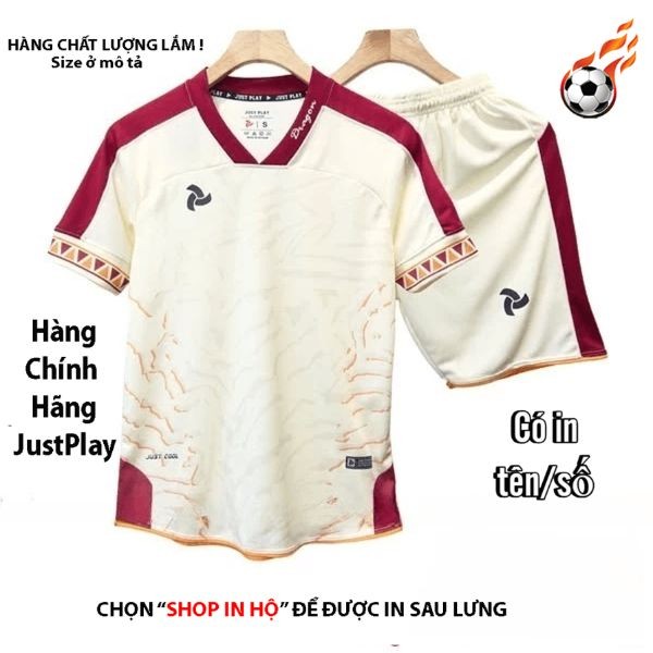 (Hàng thiết kế-Có in sau lưng) Bộ Quần Áo Bóng Đá Chính Hãng Justplay Dragon 2.0 màu Kem, vải thun CSM, Thoáng Mát
