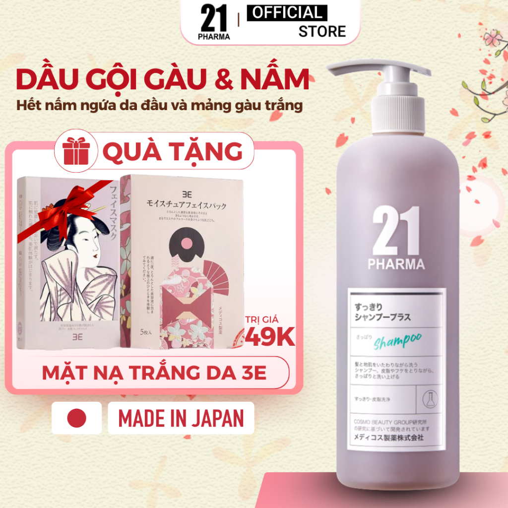Dầu gội hết nấm da đầu và mảng gàu trắng PHARMA 21 Nhật Bản Dầu Gội sạch gàu ngứa 600ml