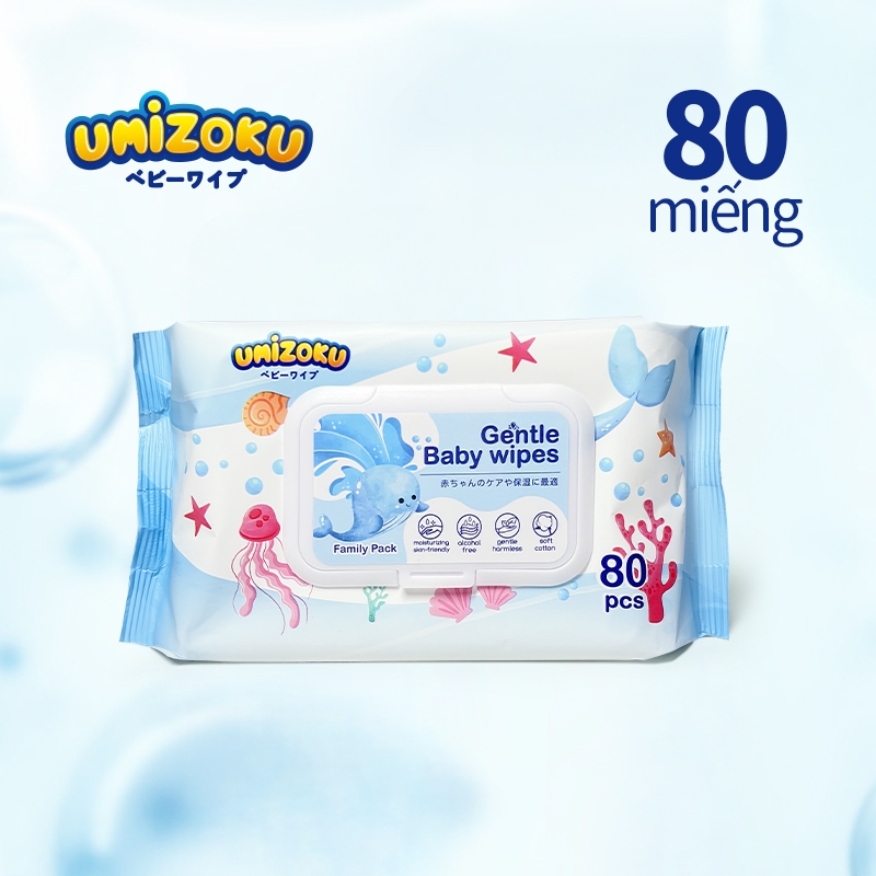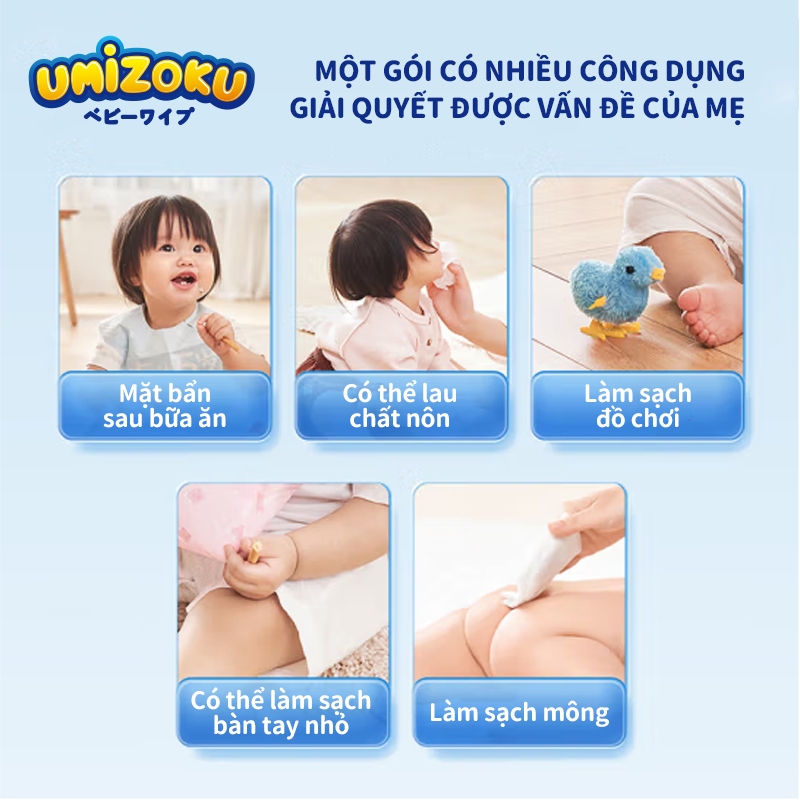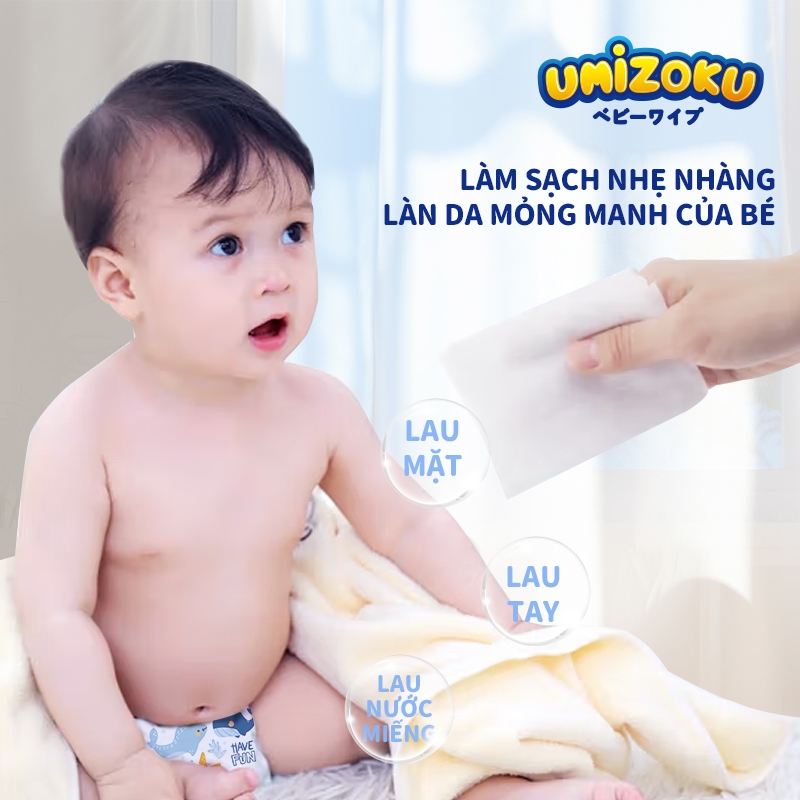 Khăn Lau Trẻ Em UMIZOKU 20/80 Miếng Không Chứa Cồn Không Chứa Paraben