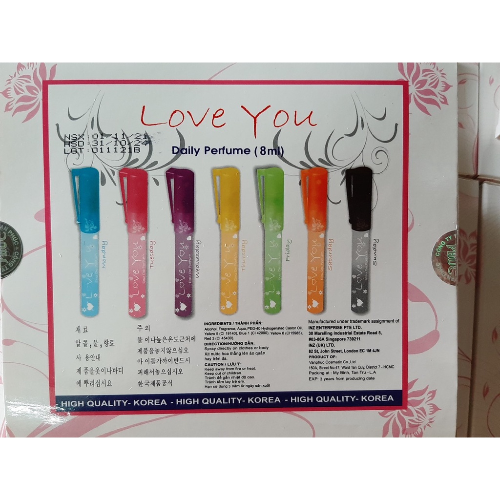 Set 7 Chai Nước Hoa Cây Bút INZ Love You (8ml/chai)