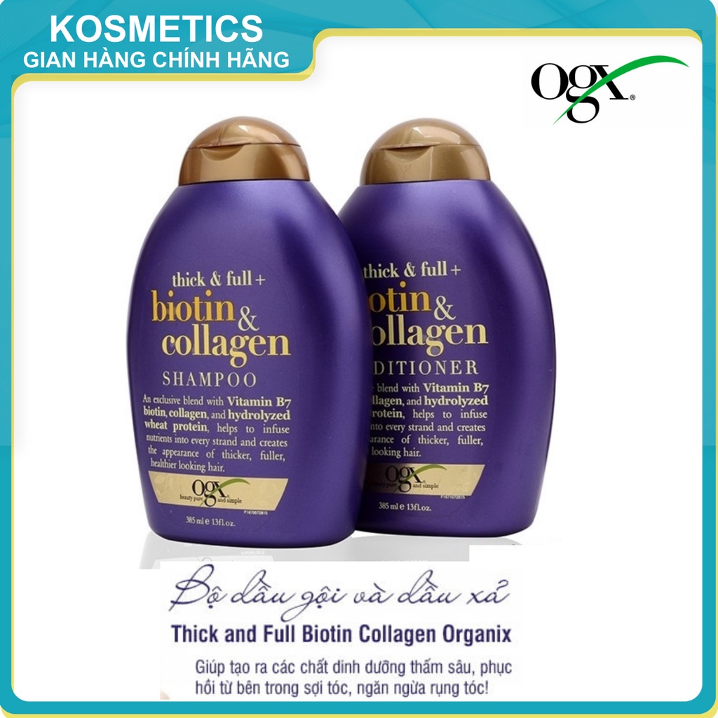 Bộ Dầu Gội Xả Dưỡng Tóc Bồng Bềnh Và Chắc Khỏe OGX Biotin & Collagen Shampoo Conditioner 385ml x2
