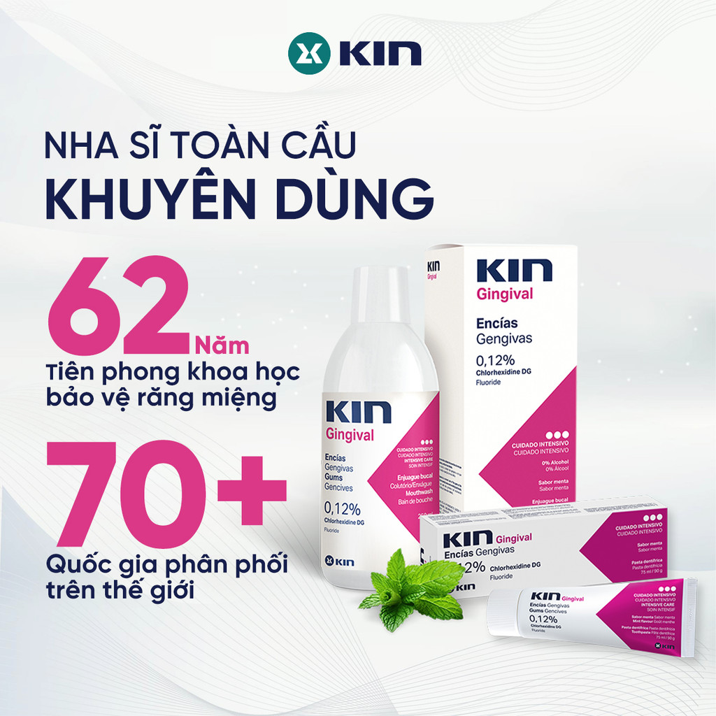 Combo Nước Súc Miệng Và Kem Đánh Răng Kin Gingival Cho Viêm Nướu, Hôi Miệng, Chảy Máu Chân Răng, 250/75ml
