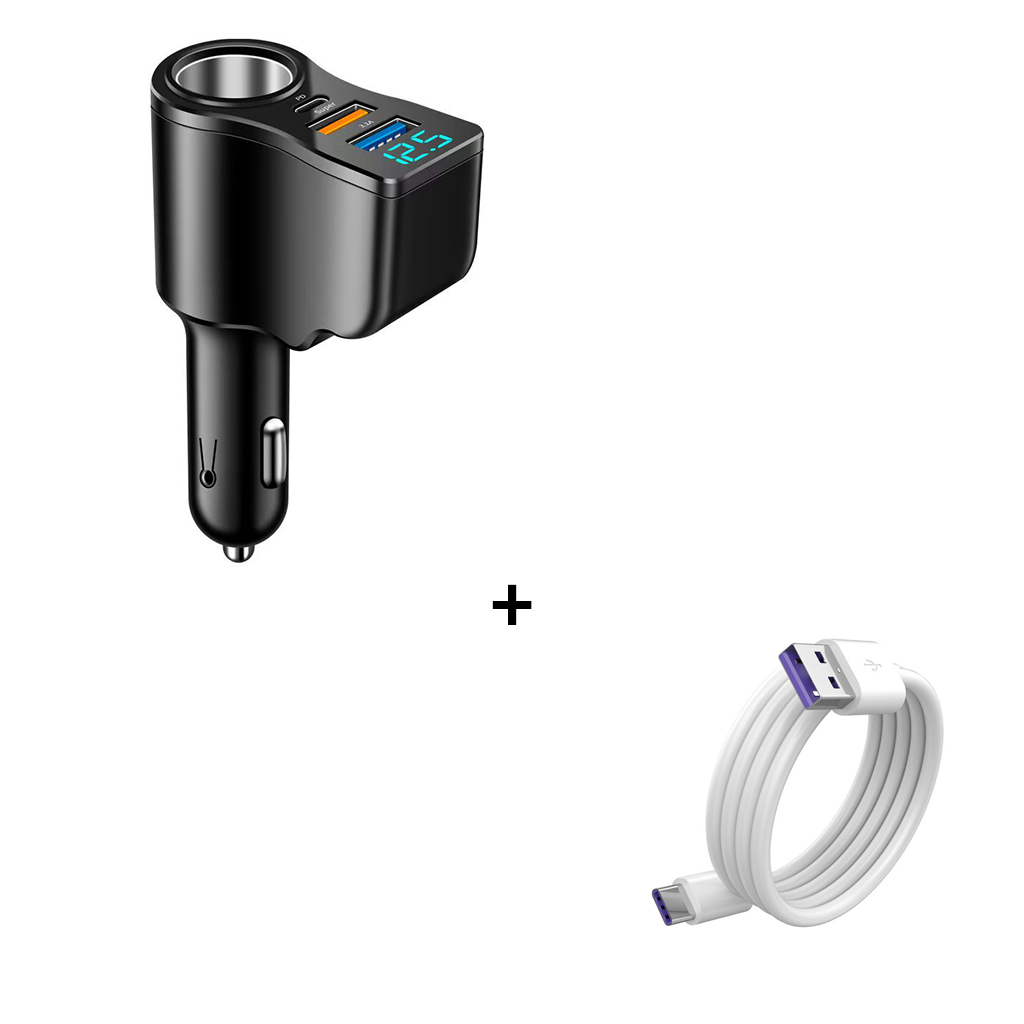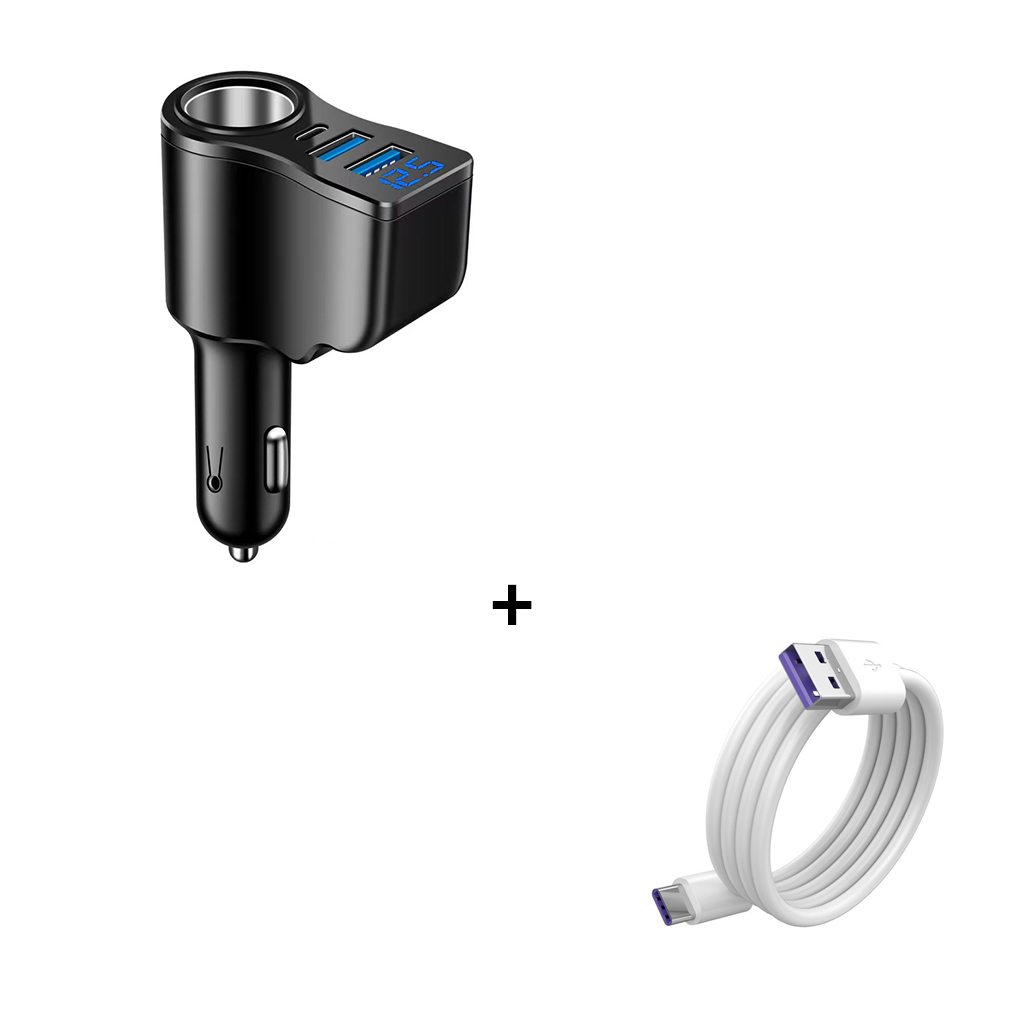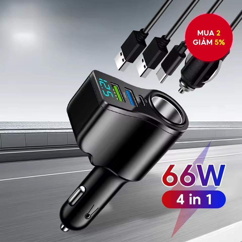 Bộ sạc xe hơi đa năng 66W sạc nhanh một kéo ba với hai cổng USB và màn hình kỹ thuật số