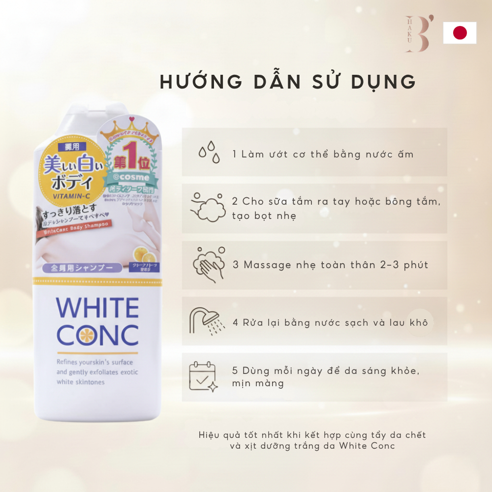 Sữa tắm trắng da White Conc Body Shampoo Nhật Bản – làm sạch và dưỡng ẩm, dưỡng trắng da toàn thân