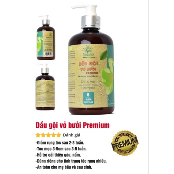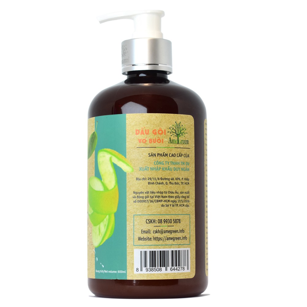 Dầu Gội Vỏ Bưởi Premium Amegreen 600ml giảm rụng tóc ,kích mọc tóc, an toàn cho mẹ bầu và sau sinh