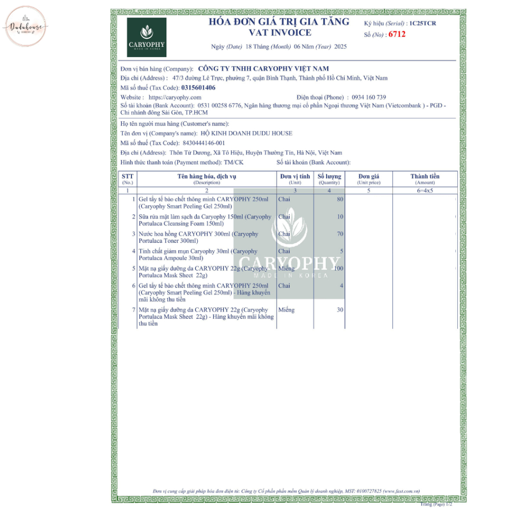 Nước Hoa Hồng Giảm Mụn Caryophy Portulaca Toner cấp ẩm ngừa mụn 300ml Duduhouse