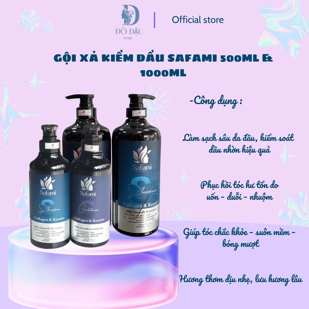 GỘI XẢ KIỀM DẦU SAFAMI 500ML , 1000ML - PHỤC HỒI HƯ TTOONR . LÀM SẠCH DA ĐẦU , KIỂM SOÁT DẦU THỪA .