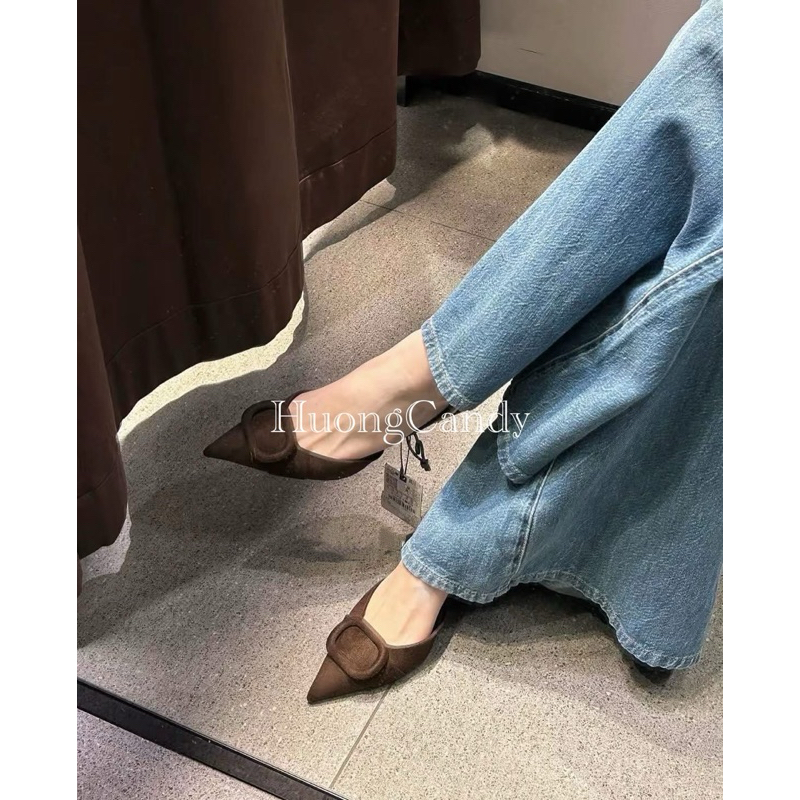 (lùi 1sz) Sandal Zet viền vuông Da lộn mũi nhọn FULLBOXii3W079-2/T1.2(sẵn)