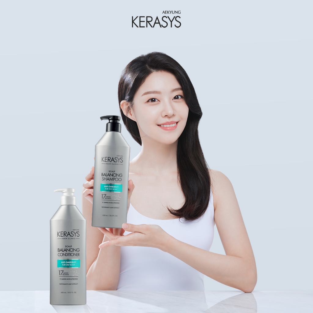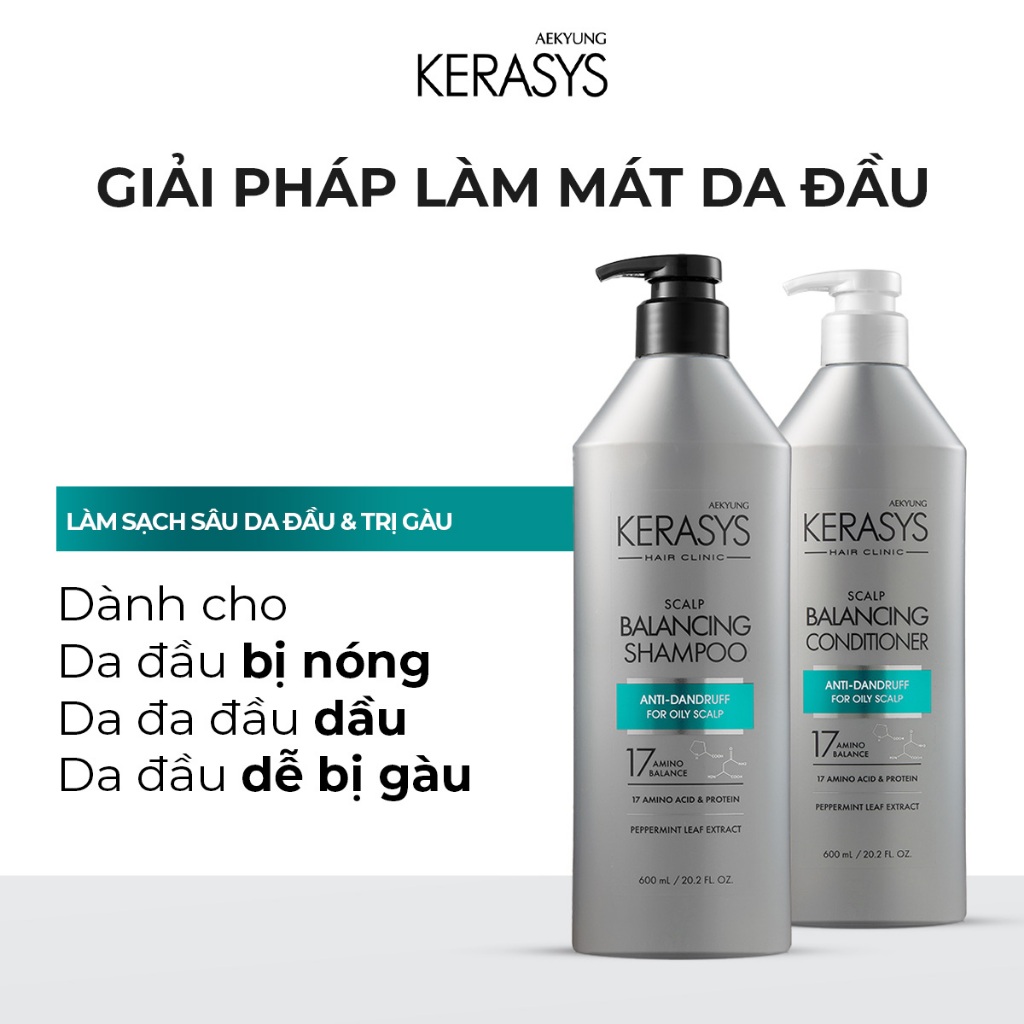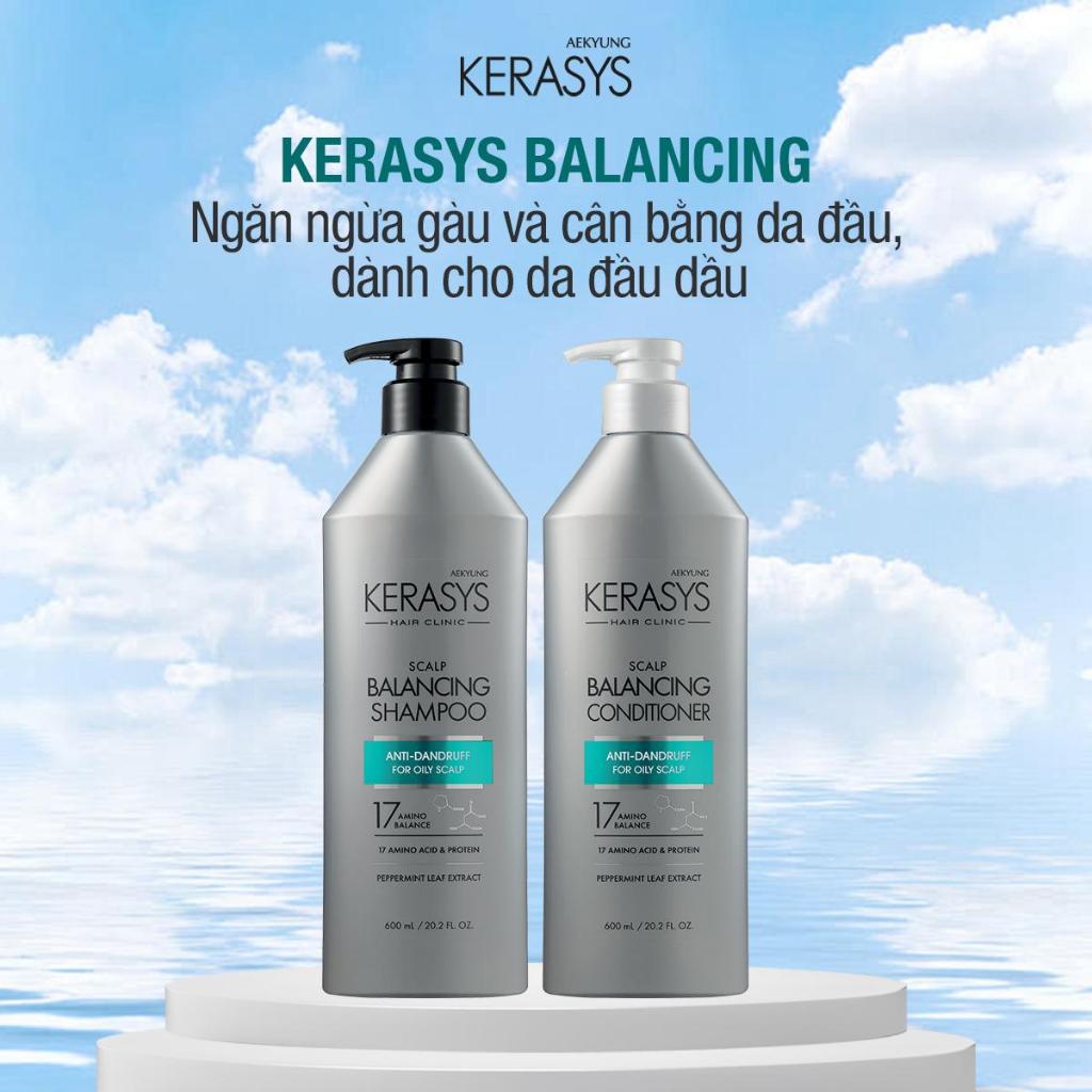 Cặp dầu gội xả Hàn Quốc ngăn ngừa gàu, cân bằng độ ẩm cho da đầu dầu Kerasys Clinic Balancing 600ml
