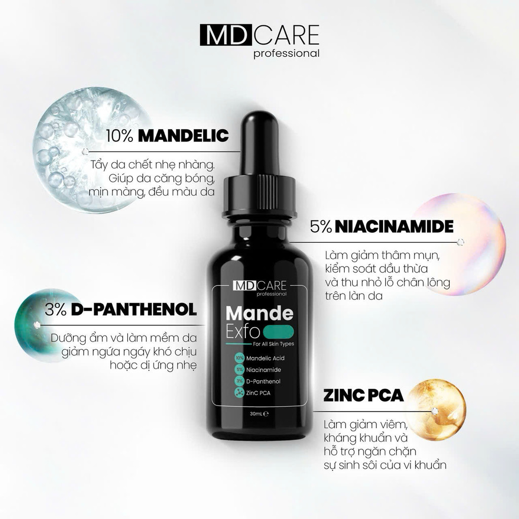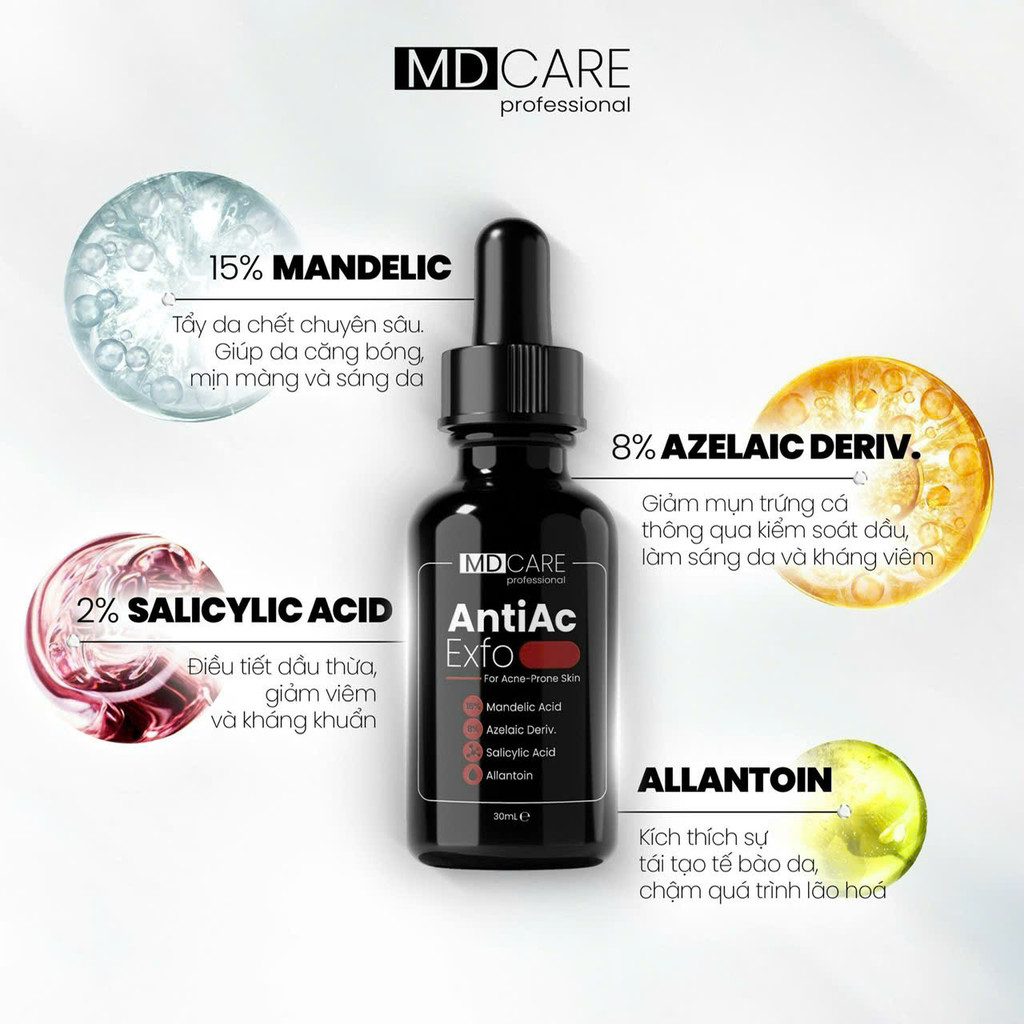 Tẩy Tế Bào Chết Làm Sáng, Mờ Thâm, Đều Màu Và Da Kiểm Soát Mụn MD Care 10ml, 30ml