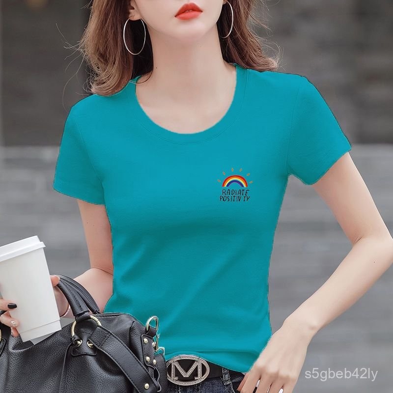 Áo tay ngắn bằng cotton modal T Áo thun nữ dáng ôm thời trang2024Áo sơ mi cơ bản đa năng mới cho phụ nữ, phong cách Hàn