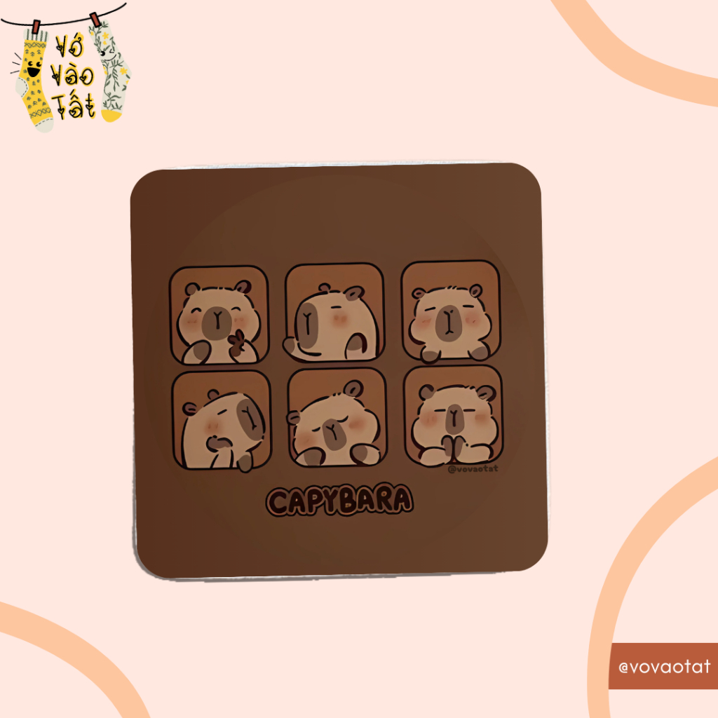 (CÓ IN THEO YÊU CẦU) Miếng lót ly hình Capybara hoạt hình đáng yêu, có thể làm quà