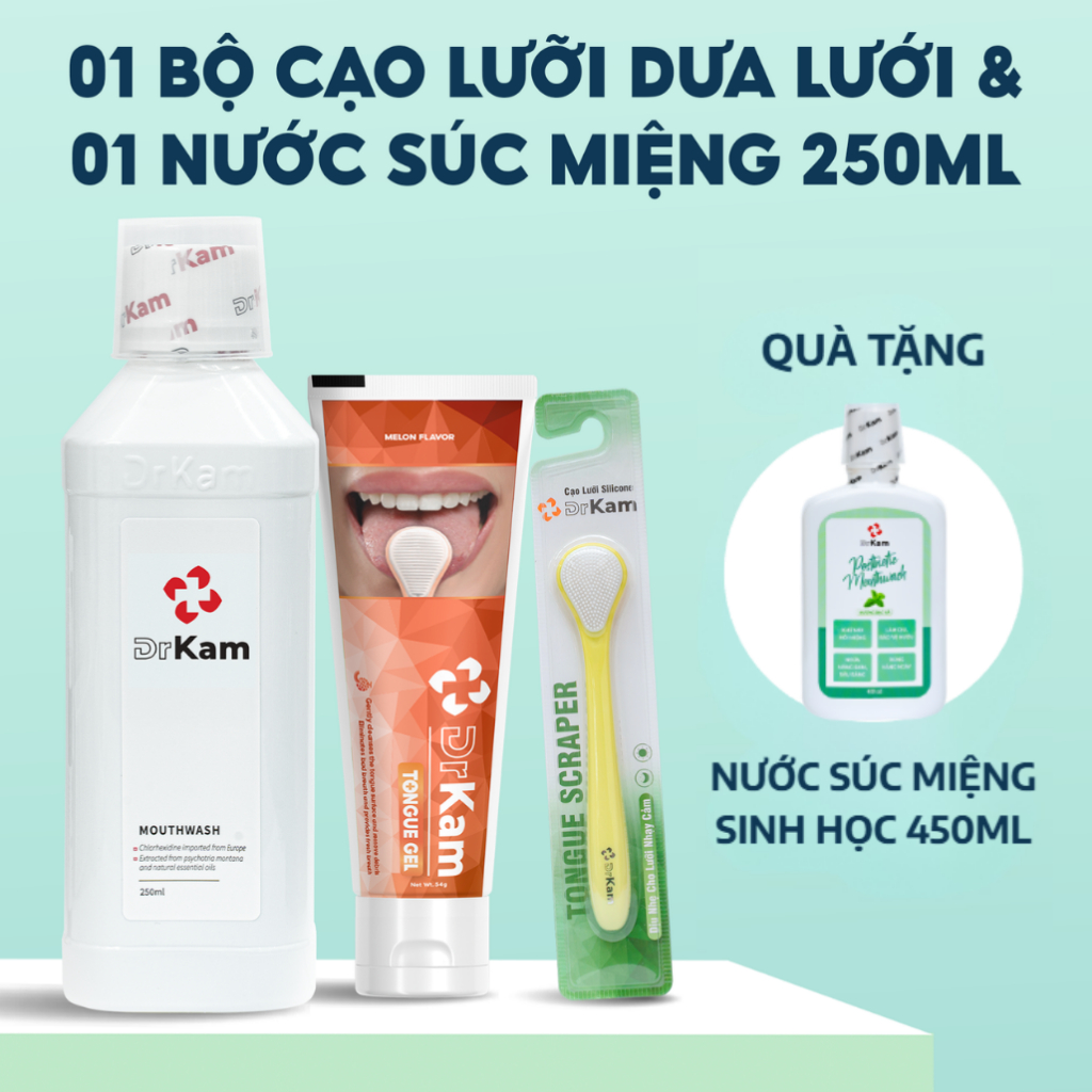 Bộ Gel Cạo Lưỡi DrKam: Gel Cạo Lưỡi Sinh Học Và Cây Cạo Lưỡi Silicone Làm Sạch Lưỡi, Khử Hôi Miệng