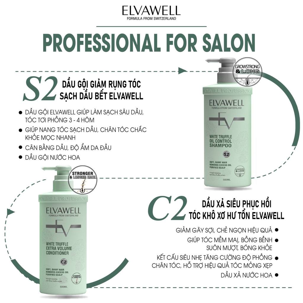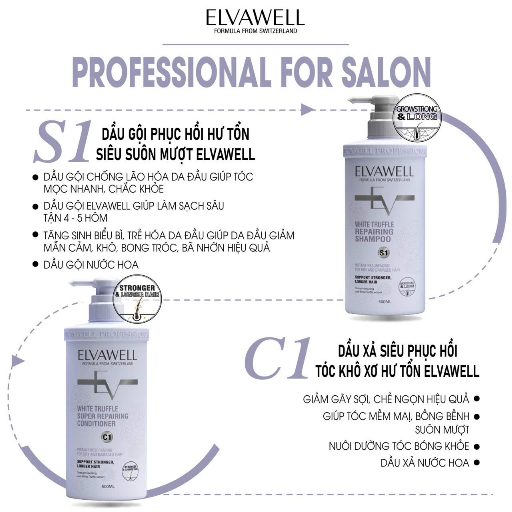 Dầu gội xả ELVAWELL chính hãng 500ml/1000ml công nghệ thụy sĩ giảm rụng tóc, thơm lâu, kiềm dầu bết