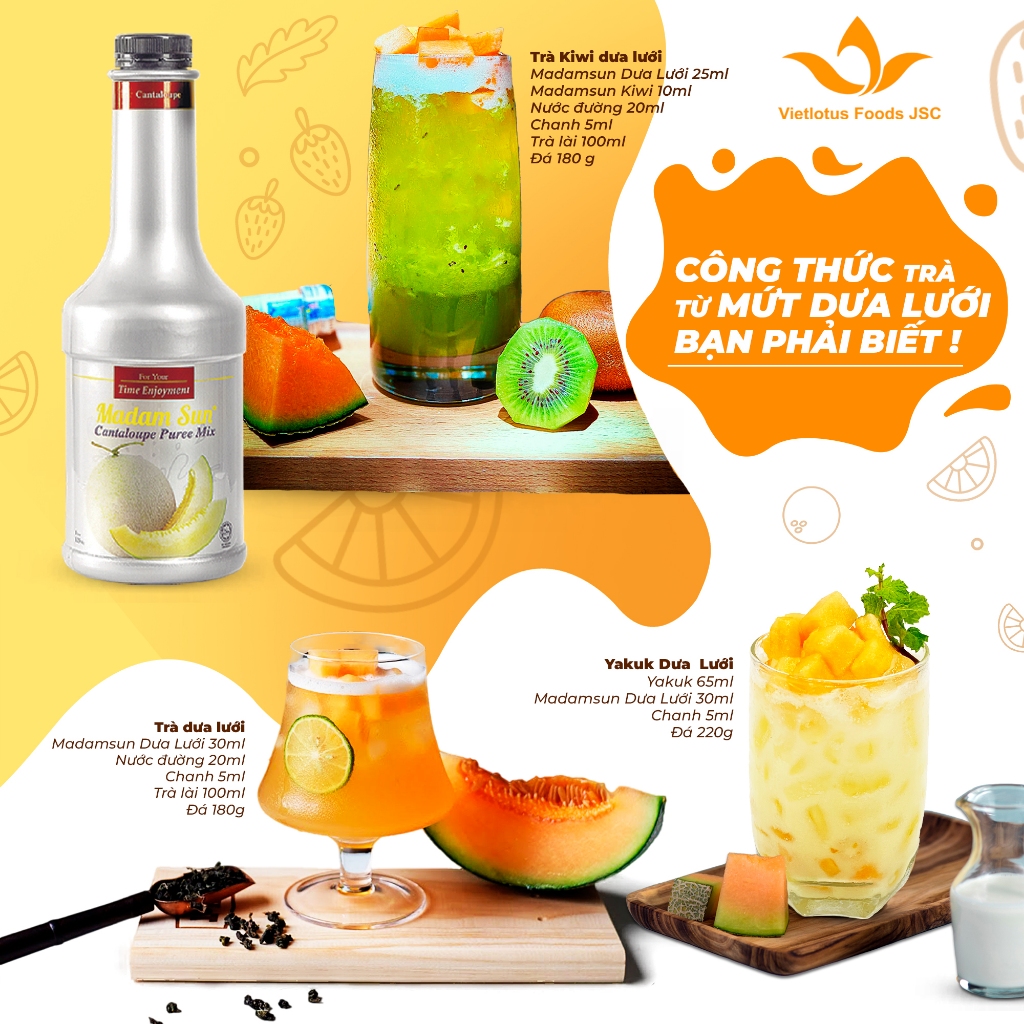 Mứt trái cây pha chế Madamsun vị Dưa Lưới (Cantaloupe Puree Mix) chai 1L - Hàng nhập khẩu Malaysia