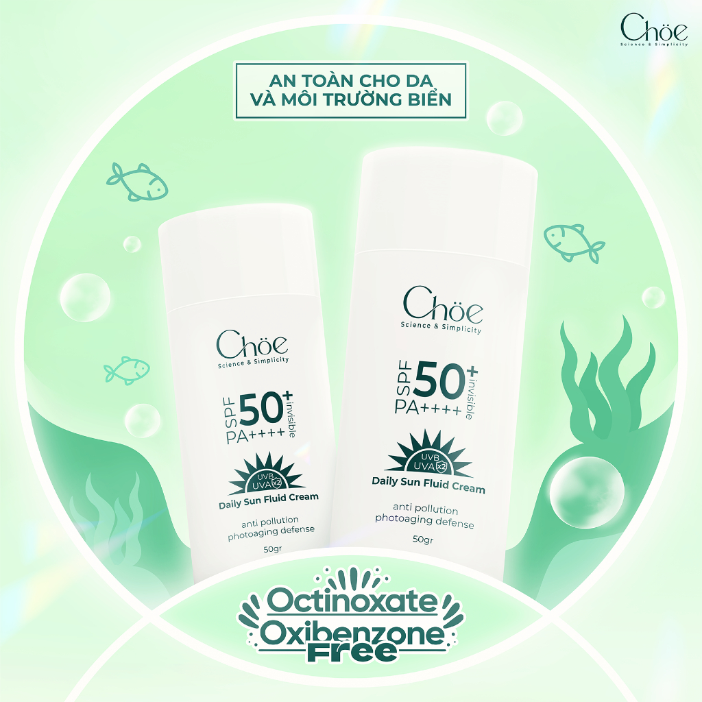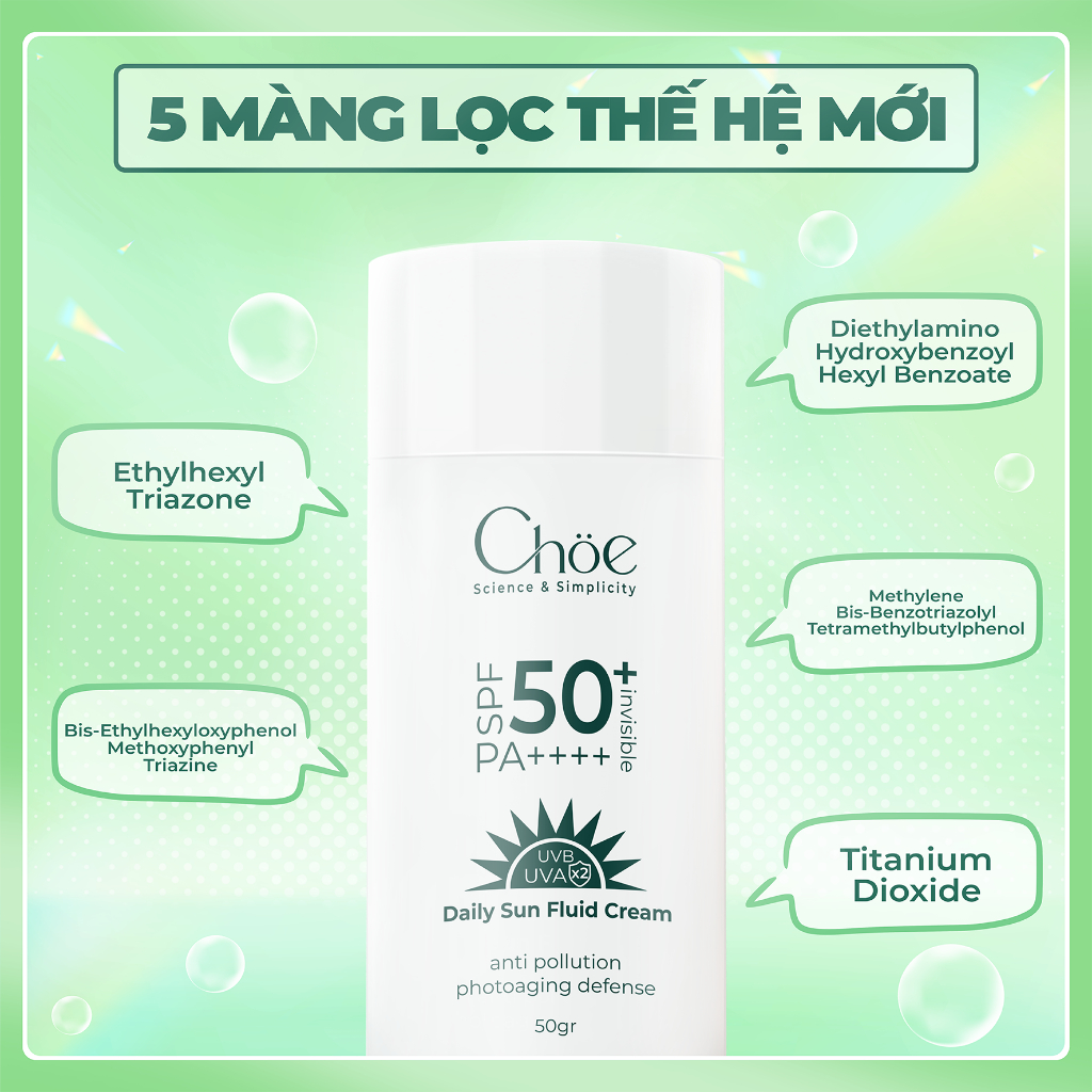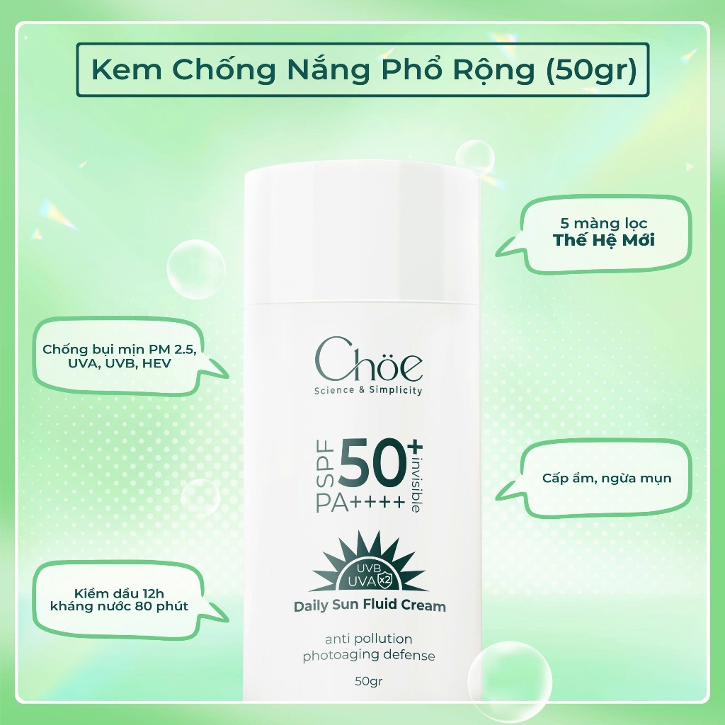 Kem chống nắng phổ rộng Choe SPF 50, PA++++ Daily Sun Fluid Cream - Ngăn ngừa lão hóa, Chống bụi mịn
