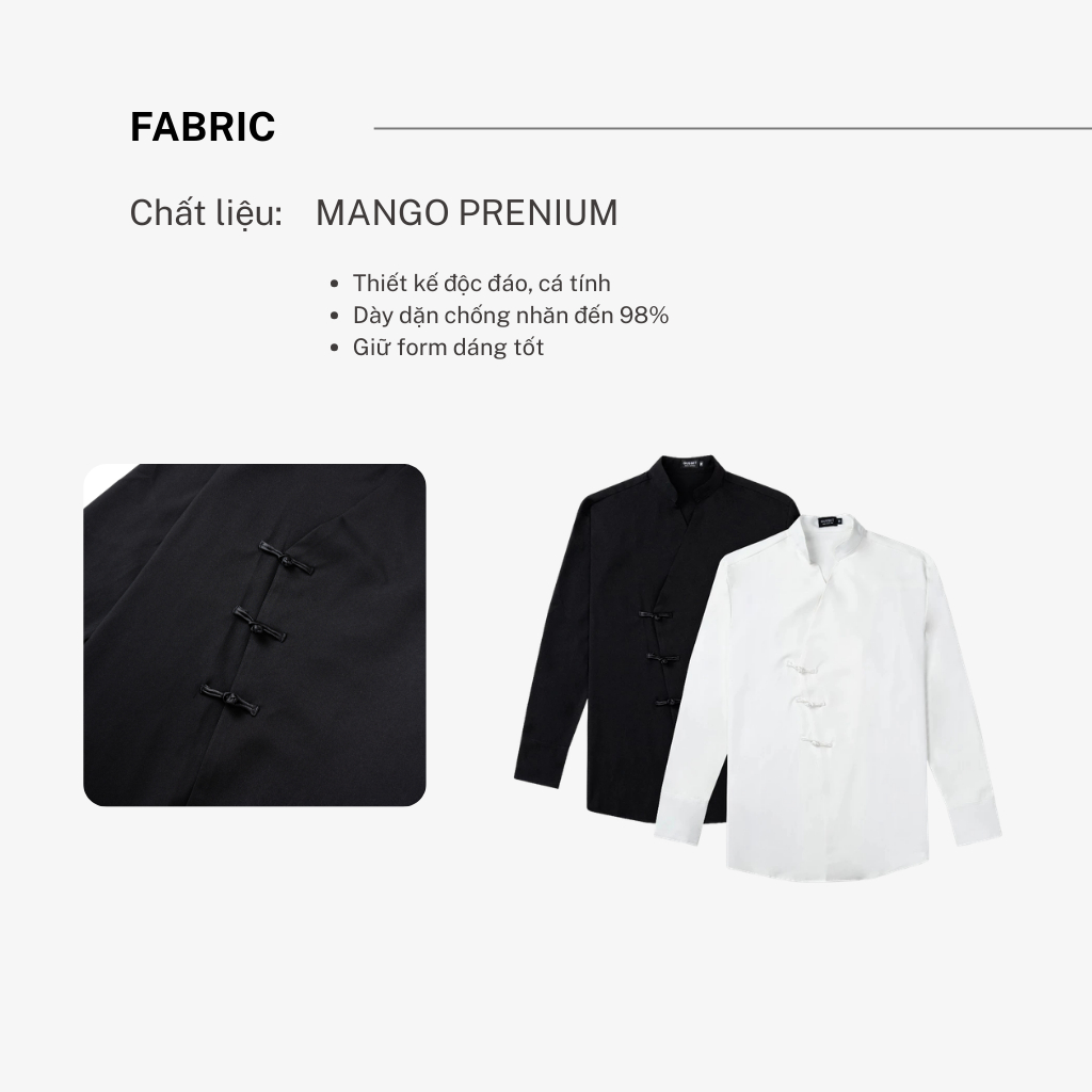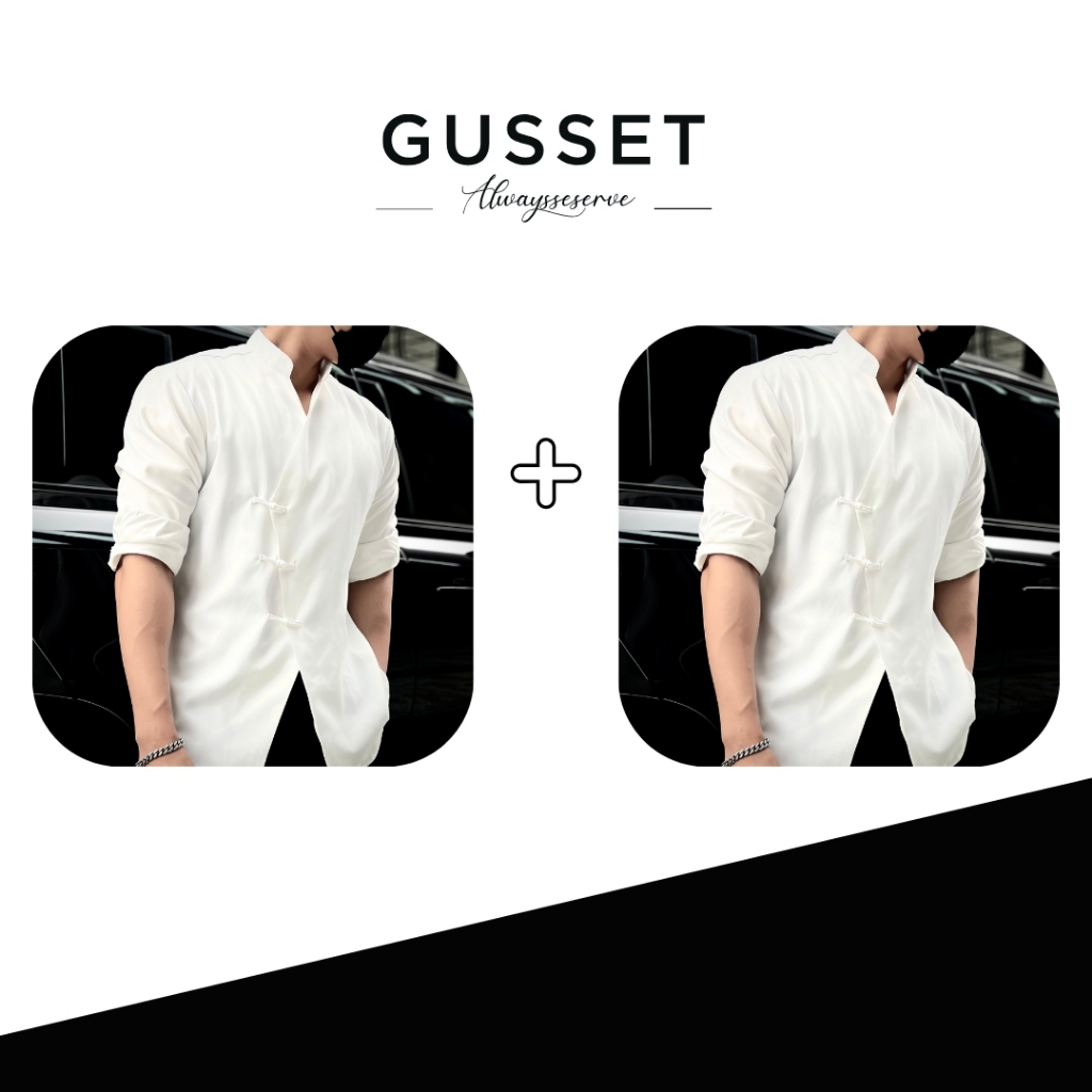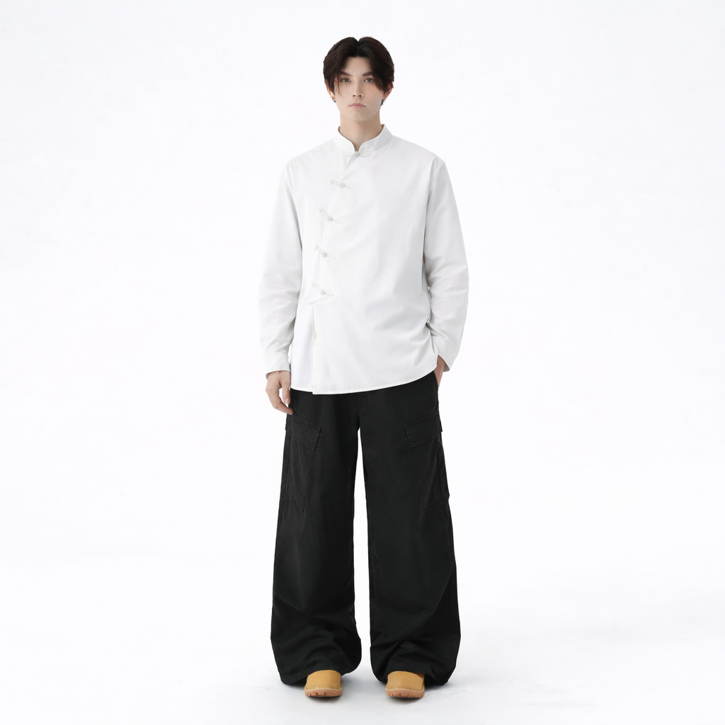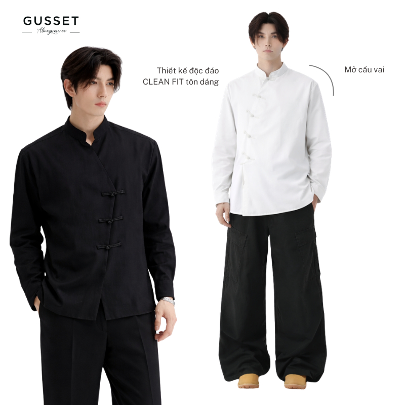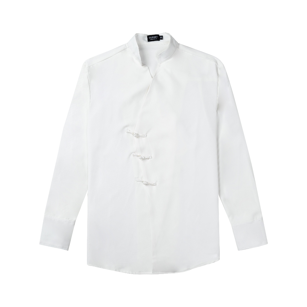 Áo Sơ Mi Nam Cúc Tàu Cổ Tàu Oversize Gusset, Áo Sơ Mi Nam Dài Tay Thiết Kế Cúc Đính Cá Tính phong cách trung hoa