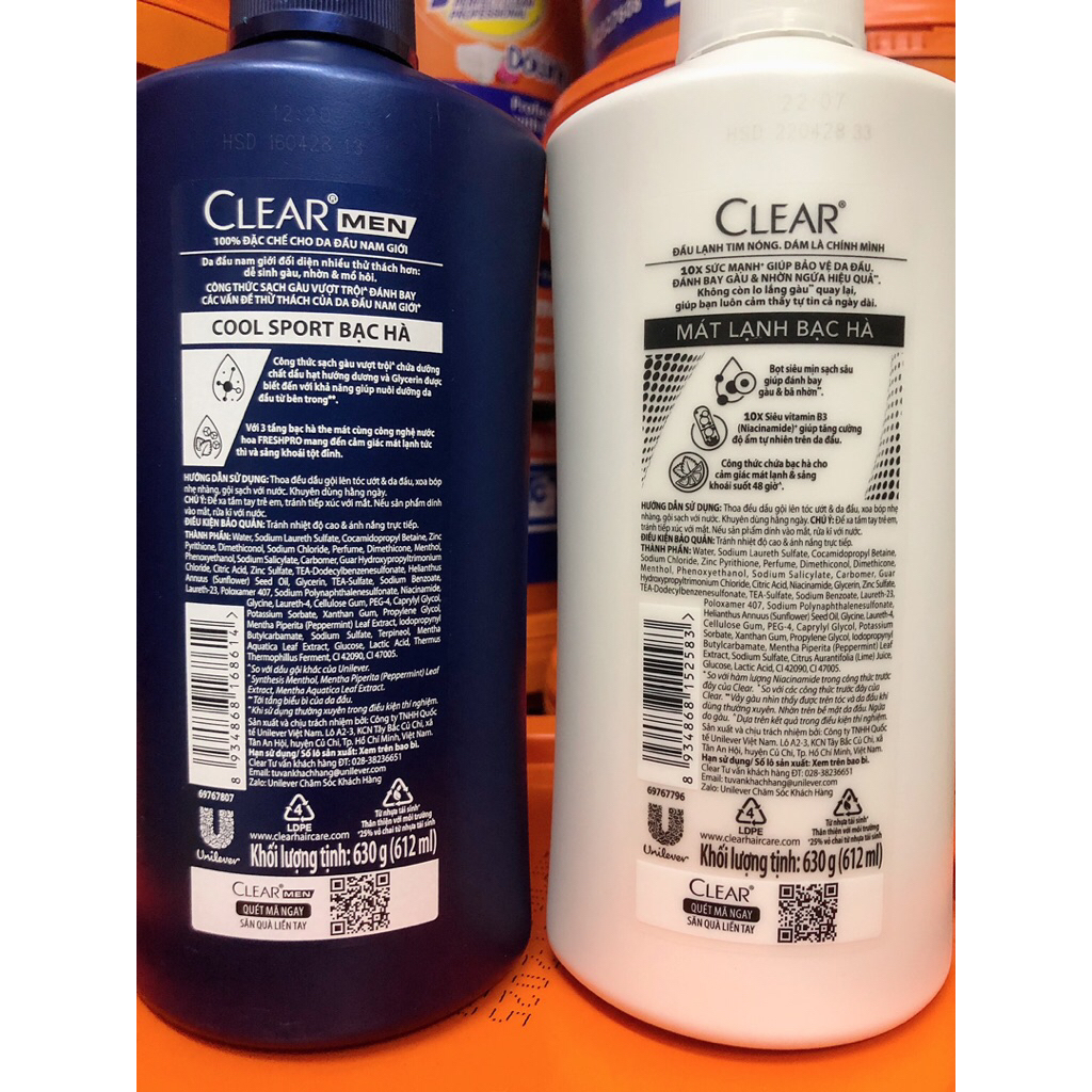 Dầu gội Clear bạc hà/Clear Men/Head shoulders chính hãng cty chai 900g/880g/700g/630g/340g date mới( hình shop chụp )