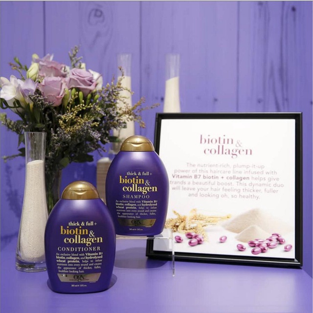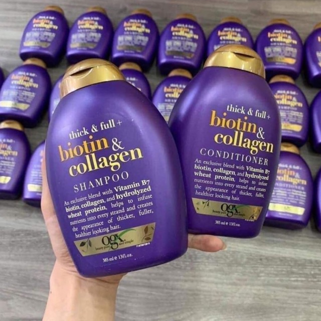 Dầu Gội Dưỡng Dày Tóc OGX Thick & Full + Biotin Tím & Collagen Shampoo 385ml