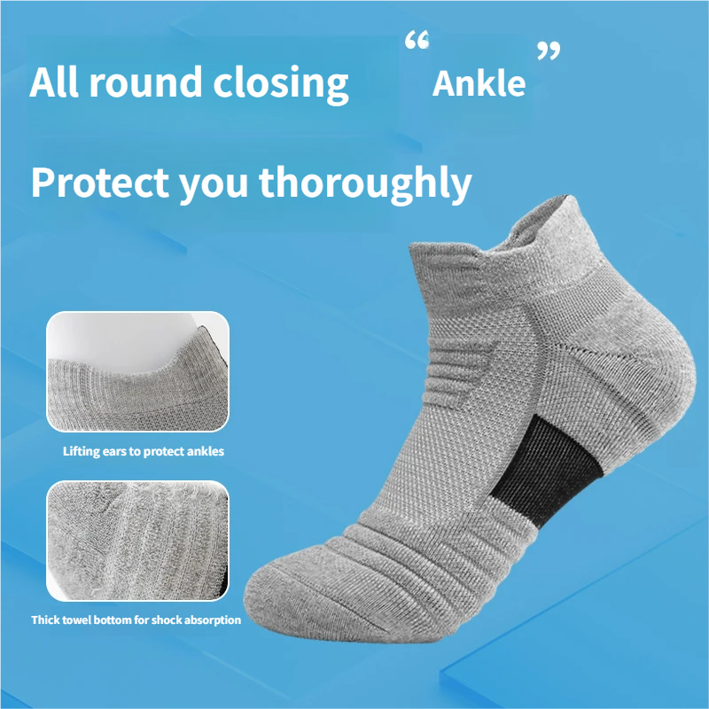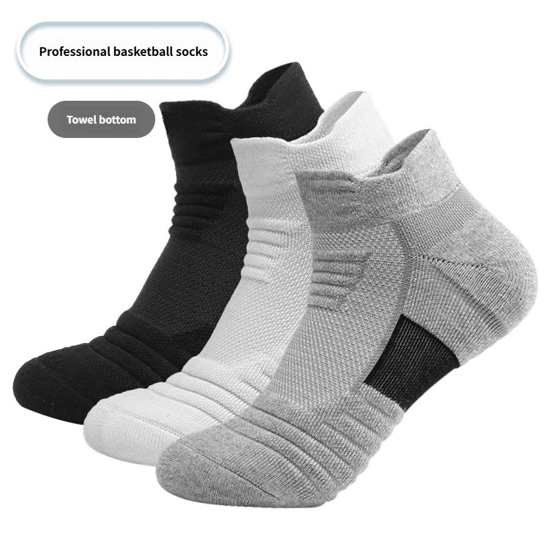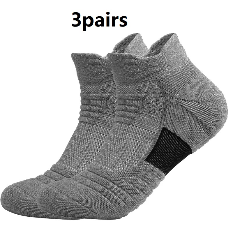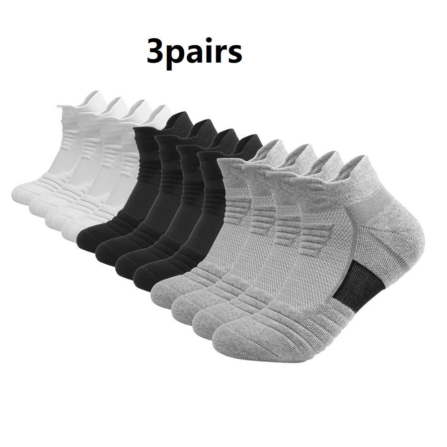 Bộ Tất Thể Thao 3 Cặp Nam - Tất Đen Ngắn Terry Cushion Cho Bóng Rổ, Chạy Bộ & Ngoài Trời (Trắng / Xám)