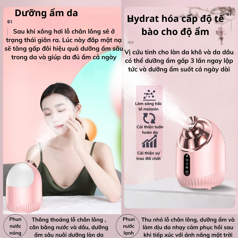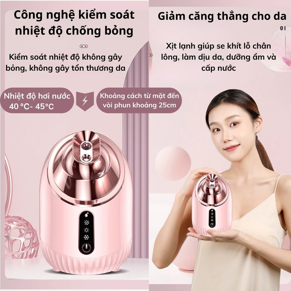 Máy xông mặt nóng lạnh kép chuyên dụng Romo cao cấp, xông hơi mặt tại nhà công nghệ phun sương nano dưỡng ẩm