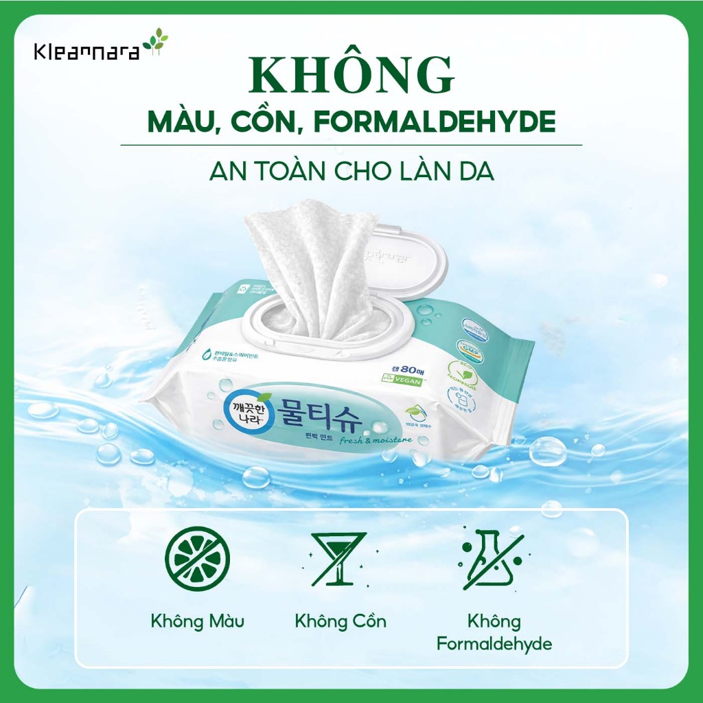 Khăn giấy ướt đa năng Kleannara Hàn Quốc tinh chất táo 80 tờ/1 gói có nắp