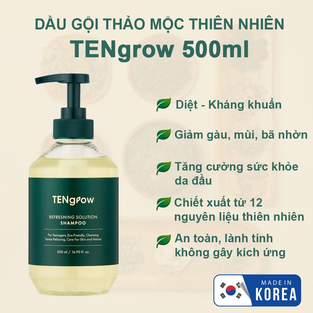 Dầu gội thảo mộc Hàn Quốc TENgrow 500ml chiết xuất thiên nhiên giúp giảm gàu, mùi, bã nhờn, ngứa ngáy