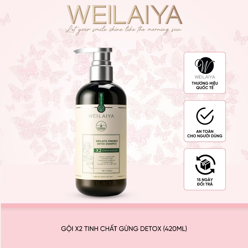 Dầu gội đầu thảo dược Weilaiya gừng detox da đầu và kích thích mọc tóc gấp đôi hiệu quả cho da đầu dầu 420ml