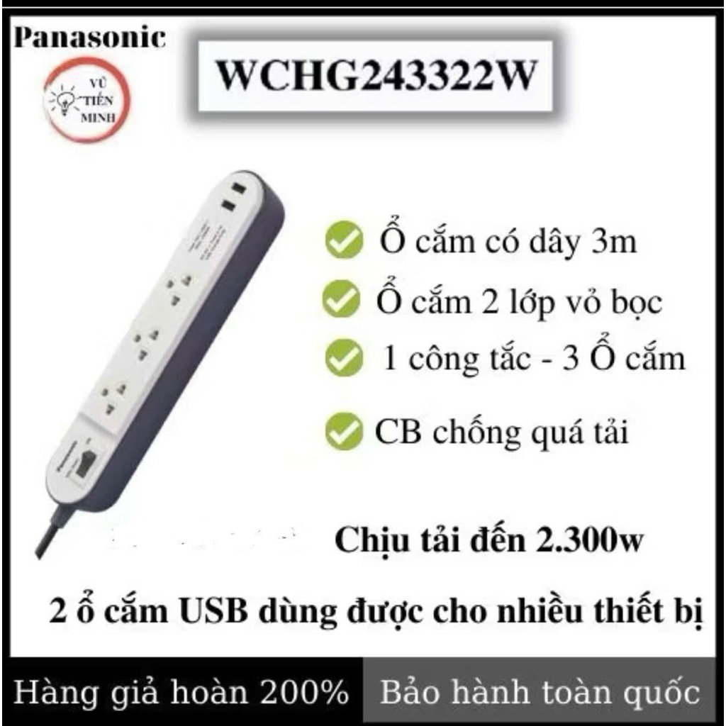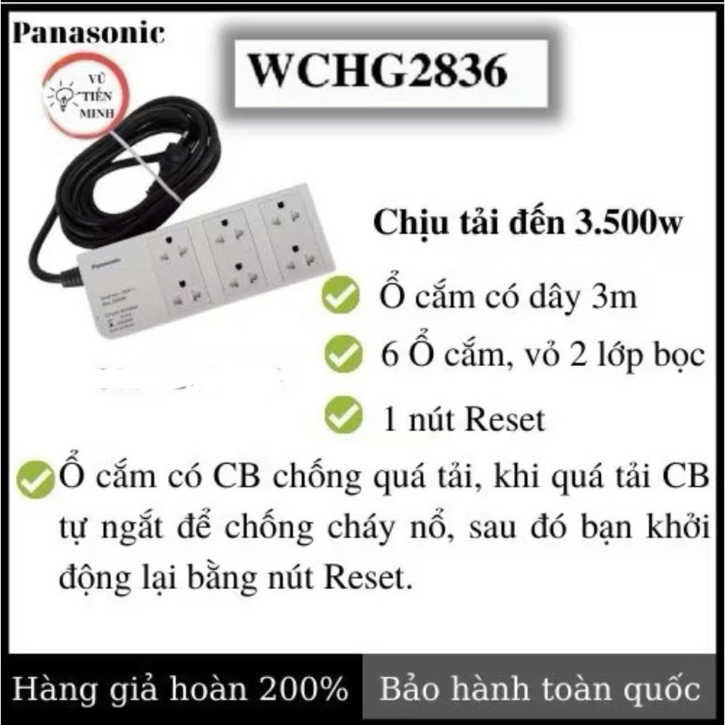 Ổ cắm điện có dây Panasonic - Hàng chính hãng - Bảo hành toàn quốc