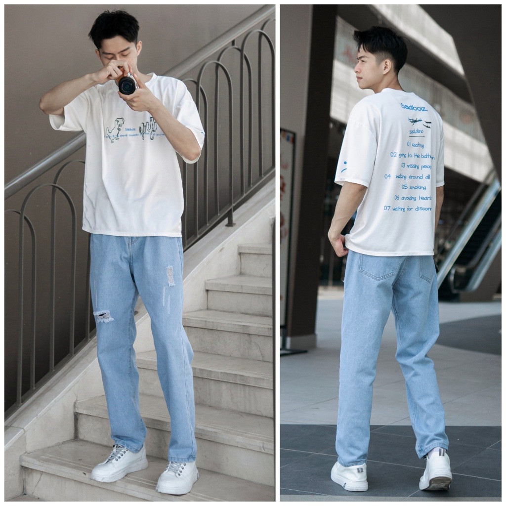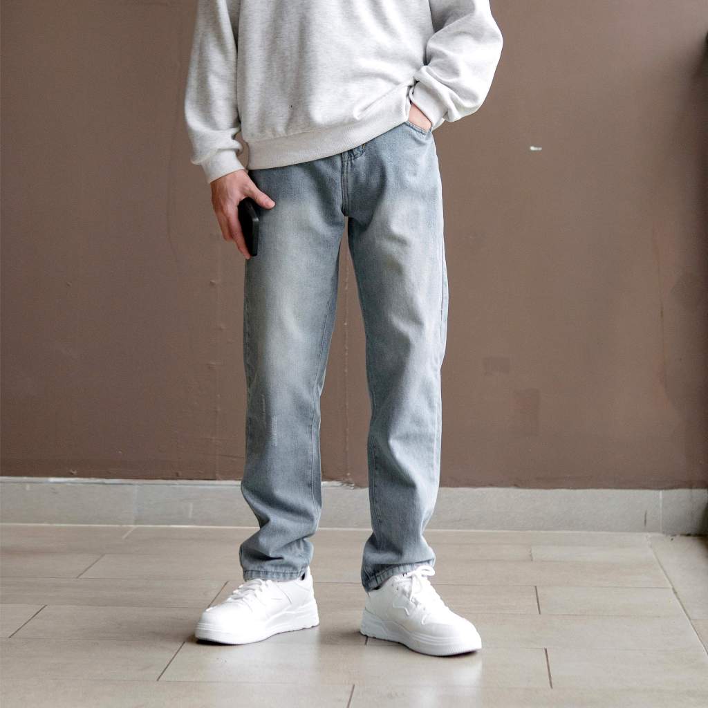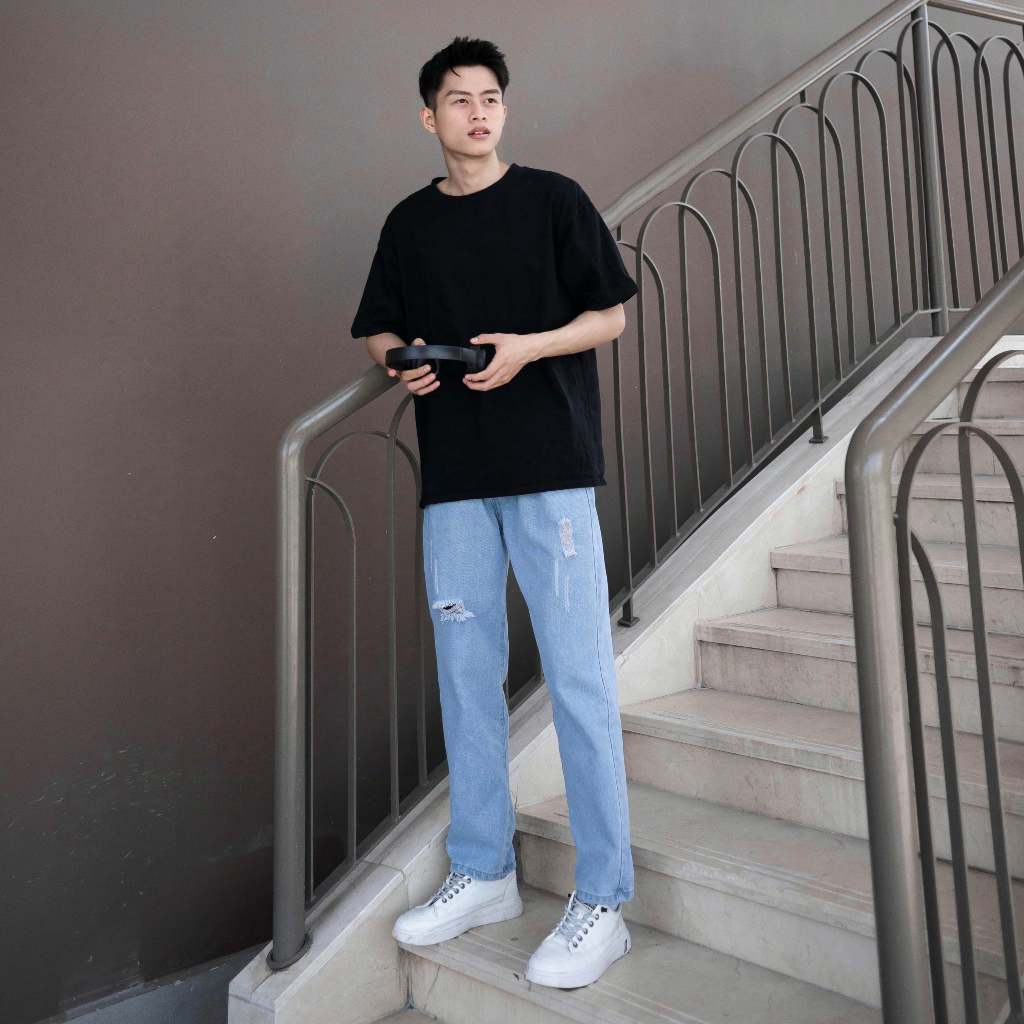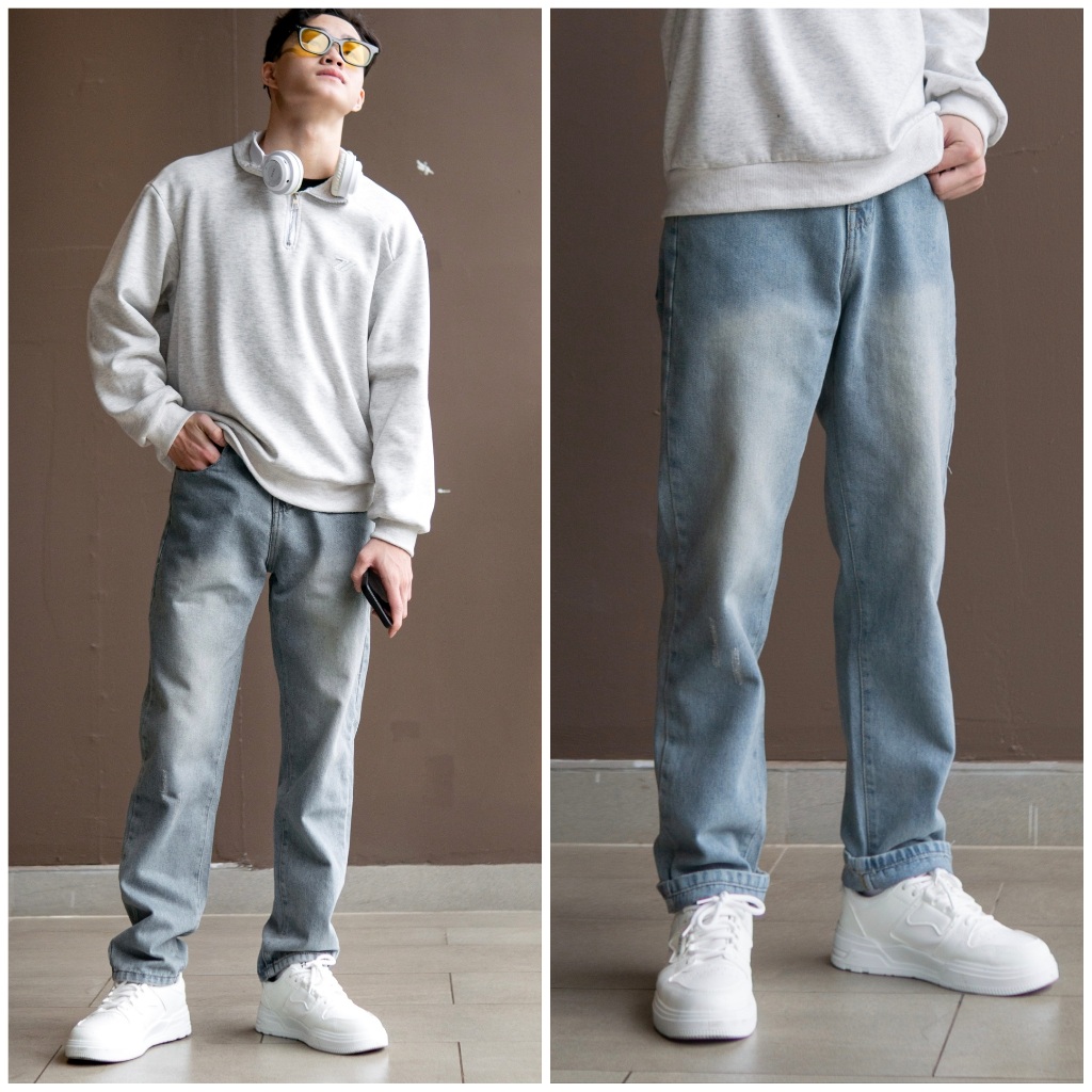 Quần jeans baggy nam rách gối màu xanh xám ống suông rộng hà nội hcm Pon.mens freeship hà nội hcm