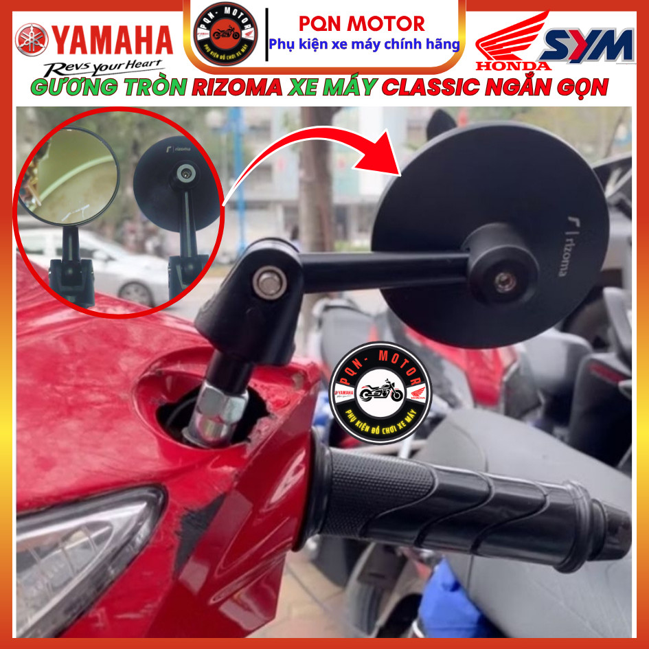 Gương Tròn Moto Mini BAR END Gương Rizoma Gắn Tay Lái Hoặc Chân Gương - Nhôm Mặt Kính Trắng Nhỏ Gọn