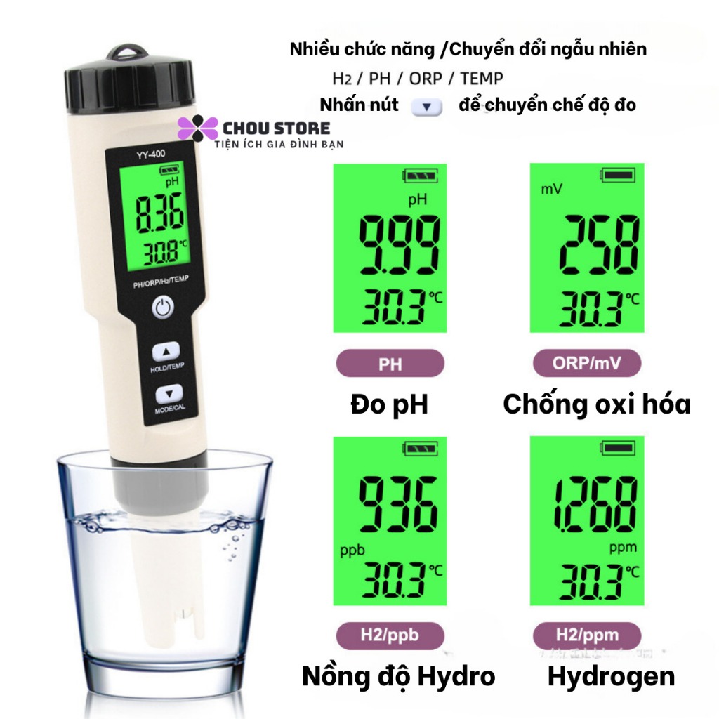 Bút đo nước ion kiềm YY400 . Máy thử nước đa năng 4IN1 đo pH ,Hydrogen , ORP ,Nhiệt độ của nước